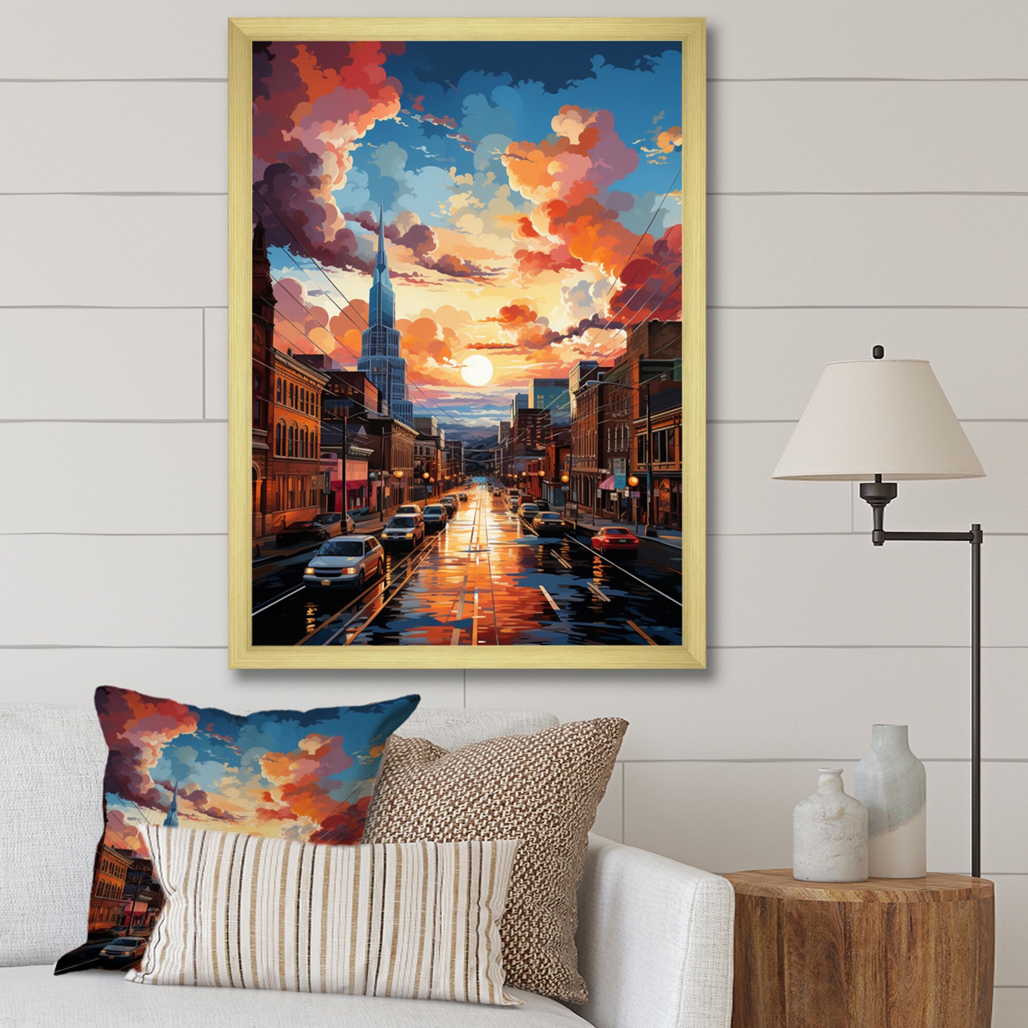 Designart "City Nashville Popart IV" Nashville Framed Canvas Art Print