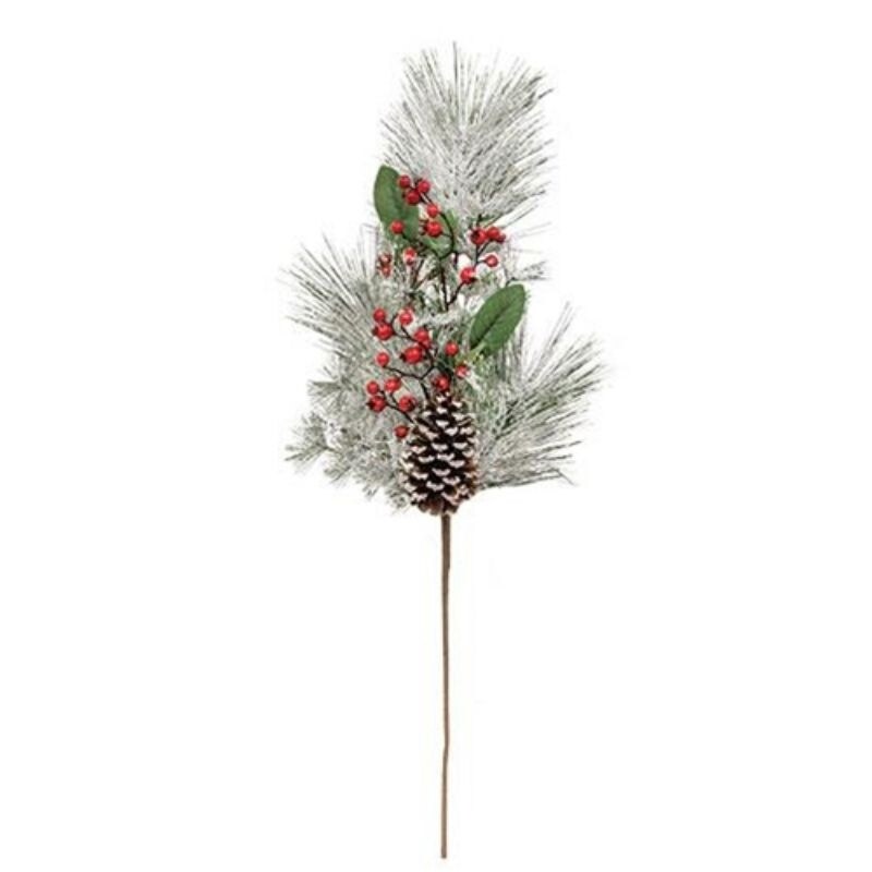 Snowy Long Needle Pine & Berry Branch - 33” long