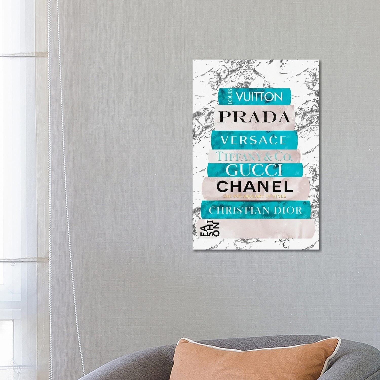 iCanvas "Fashion Nerd-Ocean Green & Beige Book Stack" by Pomaikai Barron Canvas Print