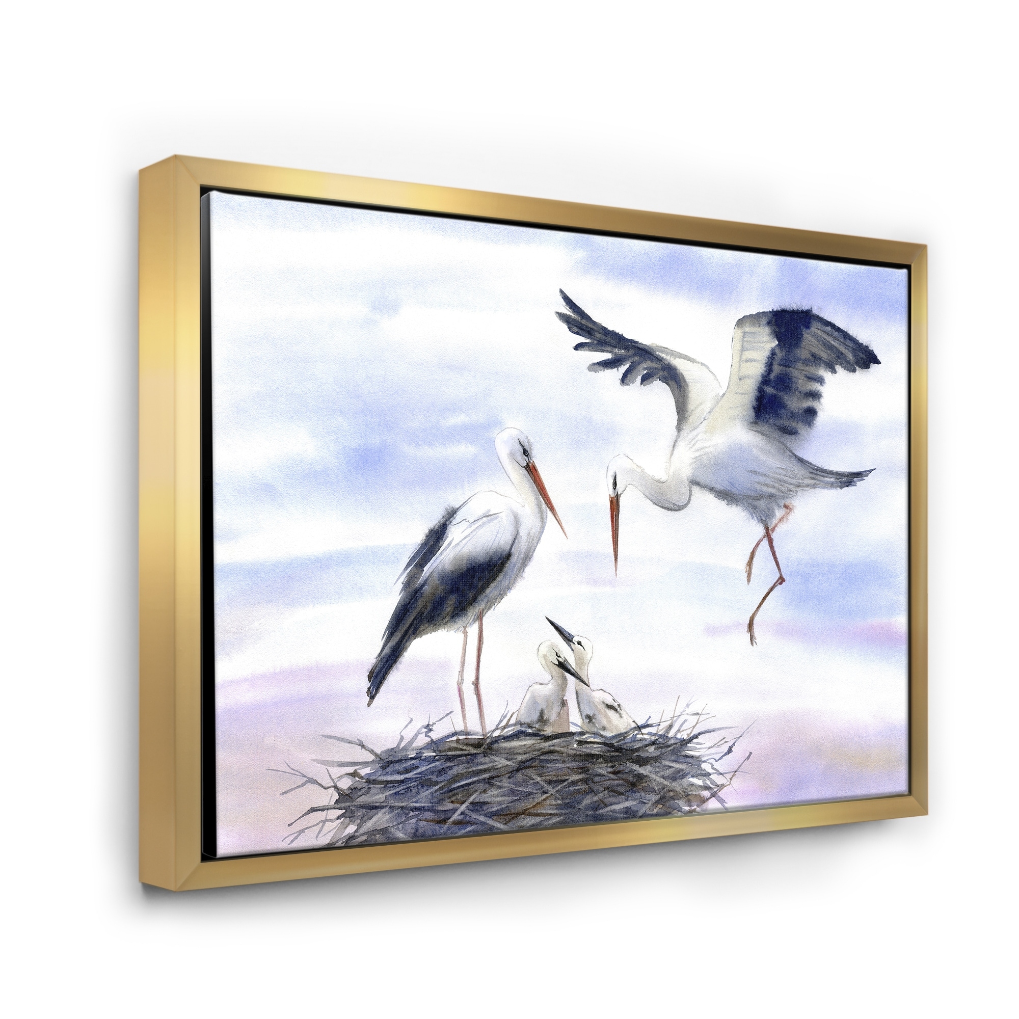 Designart "Storks In the Nest" Farmhouse Framed Canvas Wall Art Print