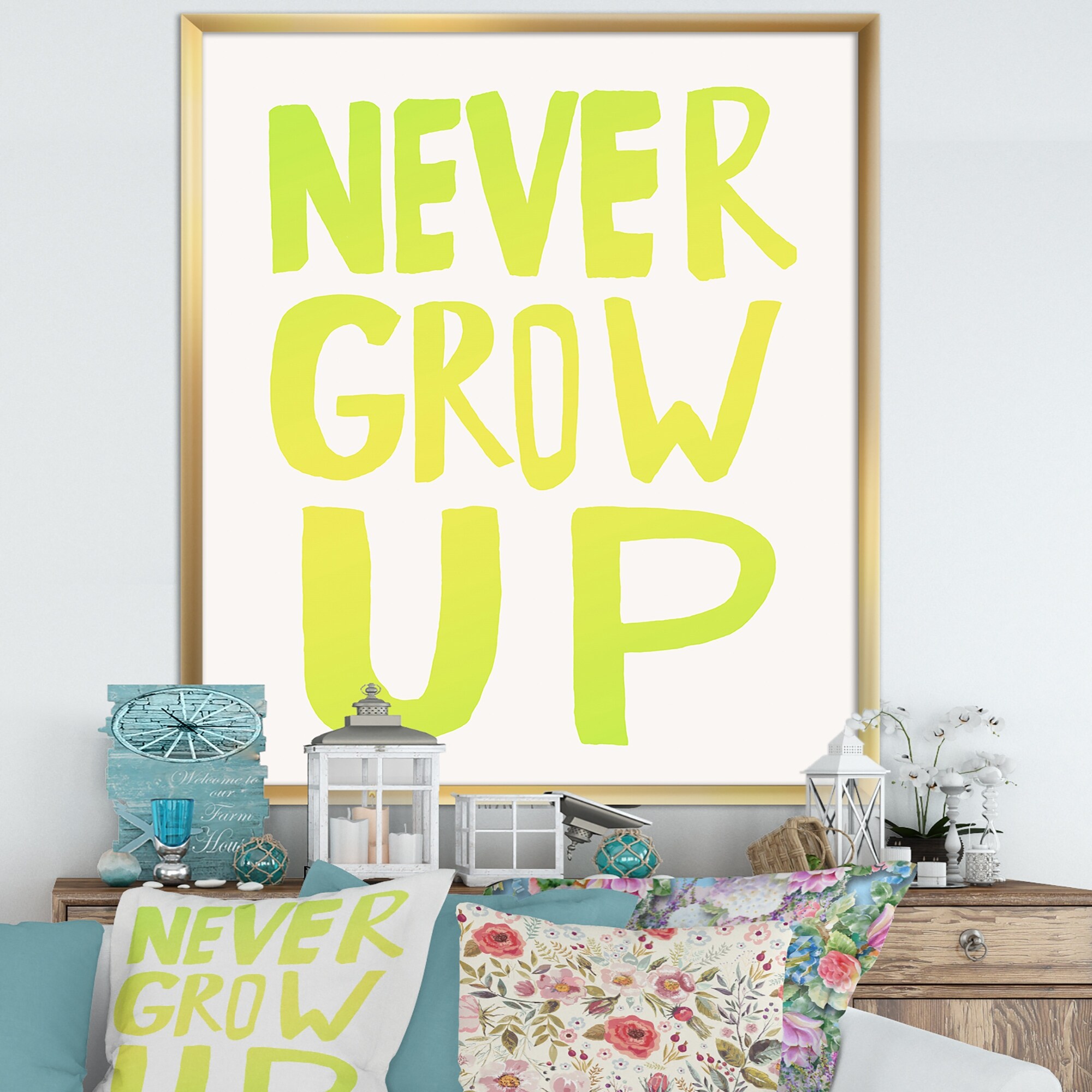 Designart "Never Grow Up" Cottage Framed Art Print