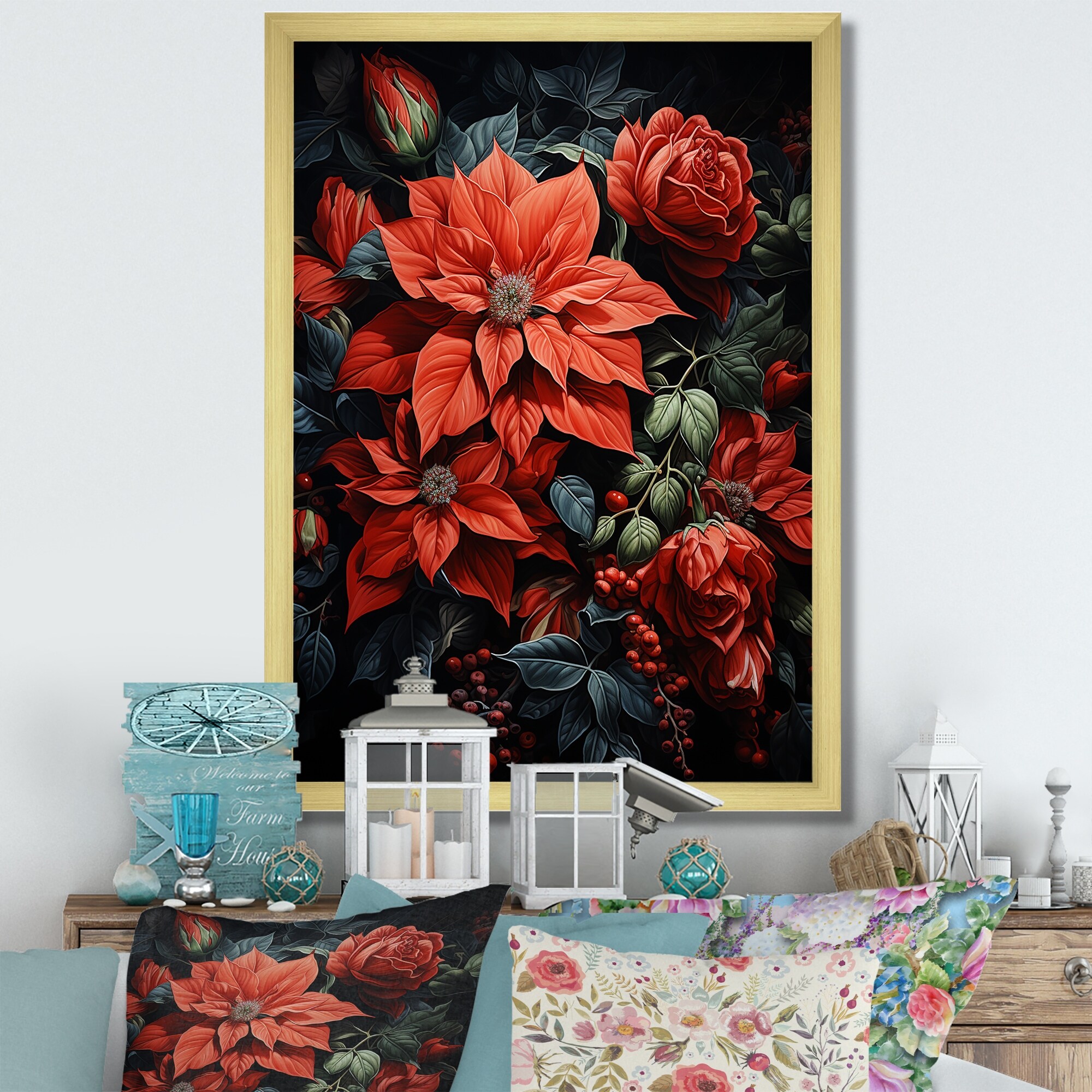 Designart "Poinsettia Flower Noir II" Poinsettias Framed Wall Art Prints