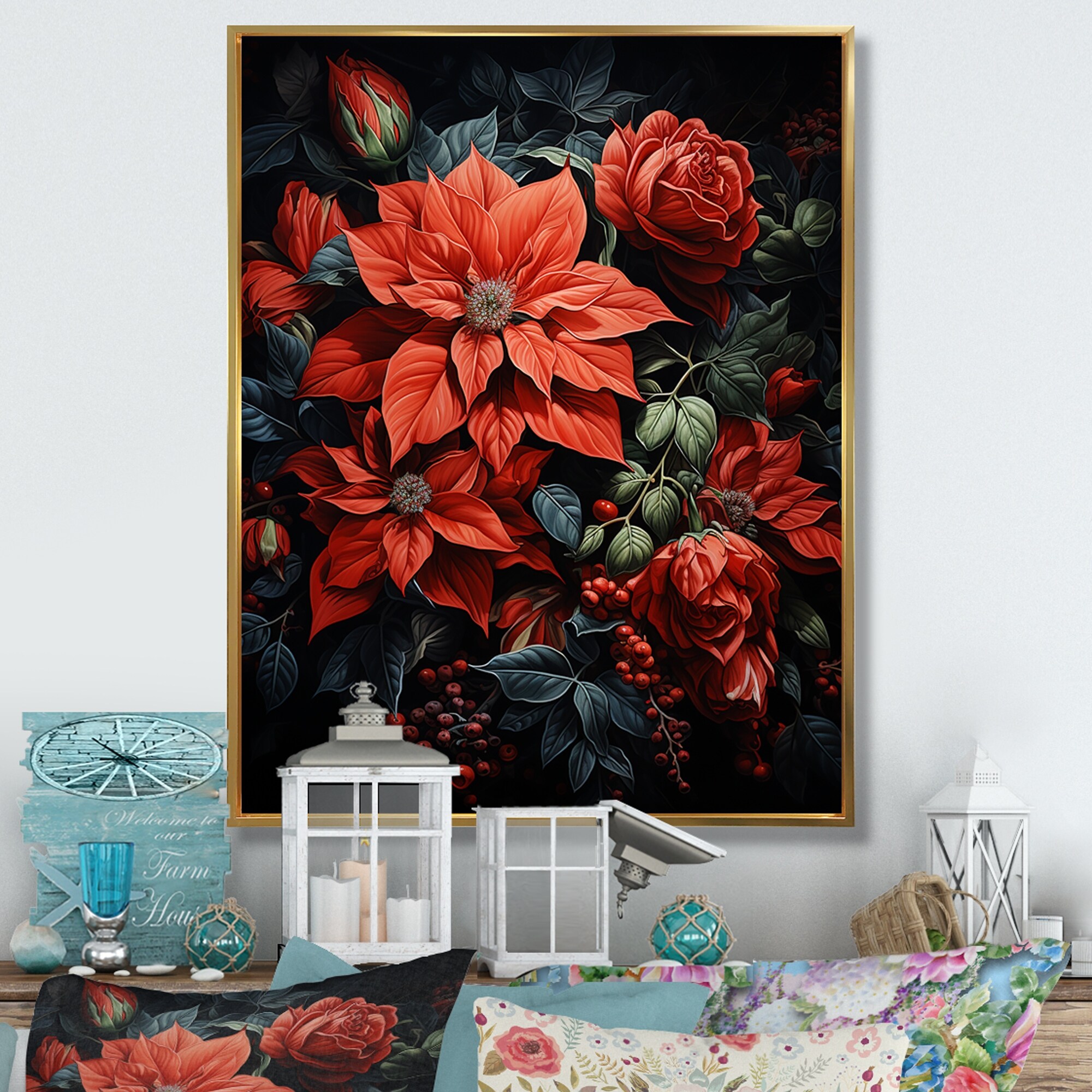 Designart "Poinsettia Flower Noir II" Poinsettias Framed Canvas Prints