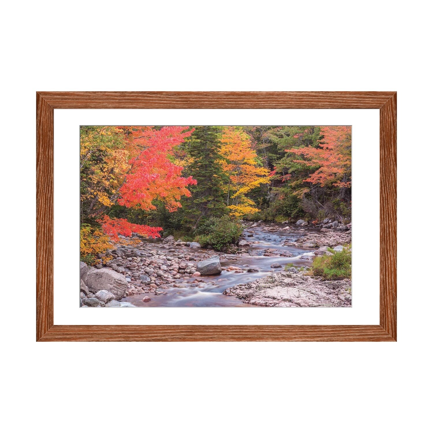 "Stream with trees in a forest in autumn, Nova Scotia, Canada" Black Framed Print
