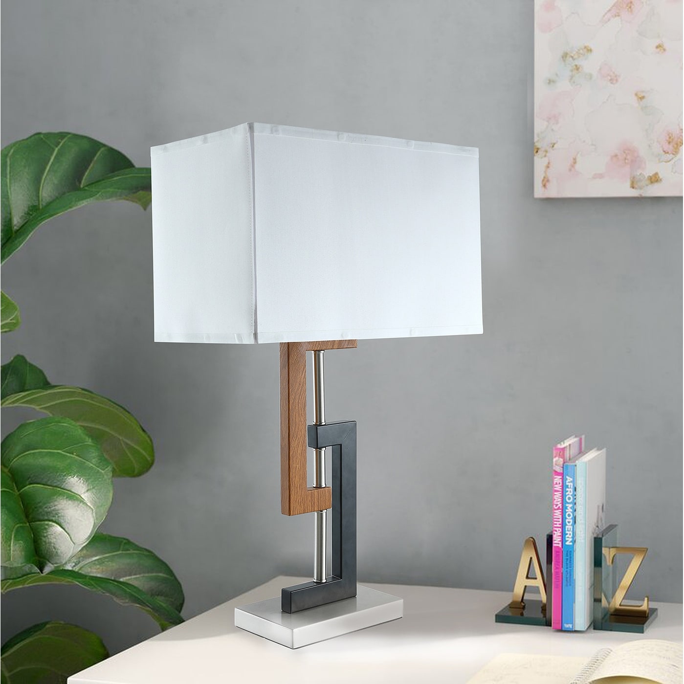 Novelty Fabric Ivory 1-Light Rectangle Table Lamp
