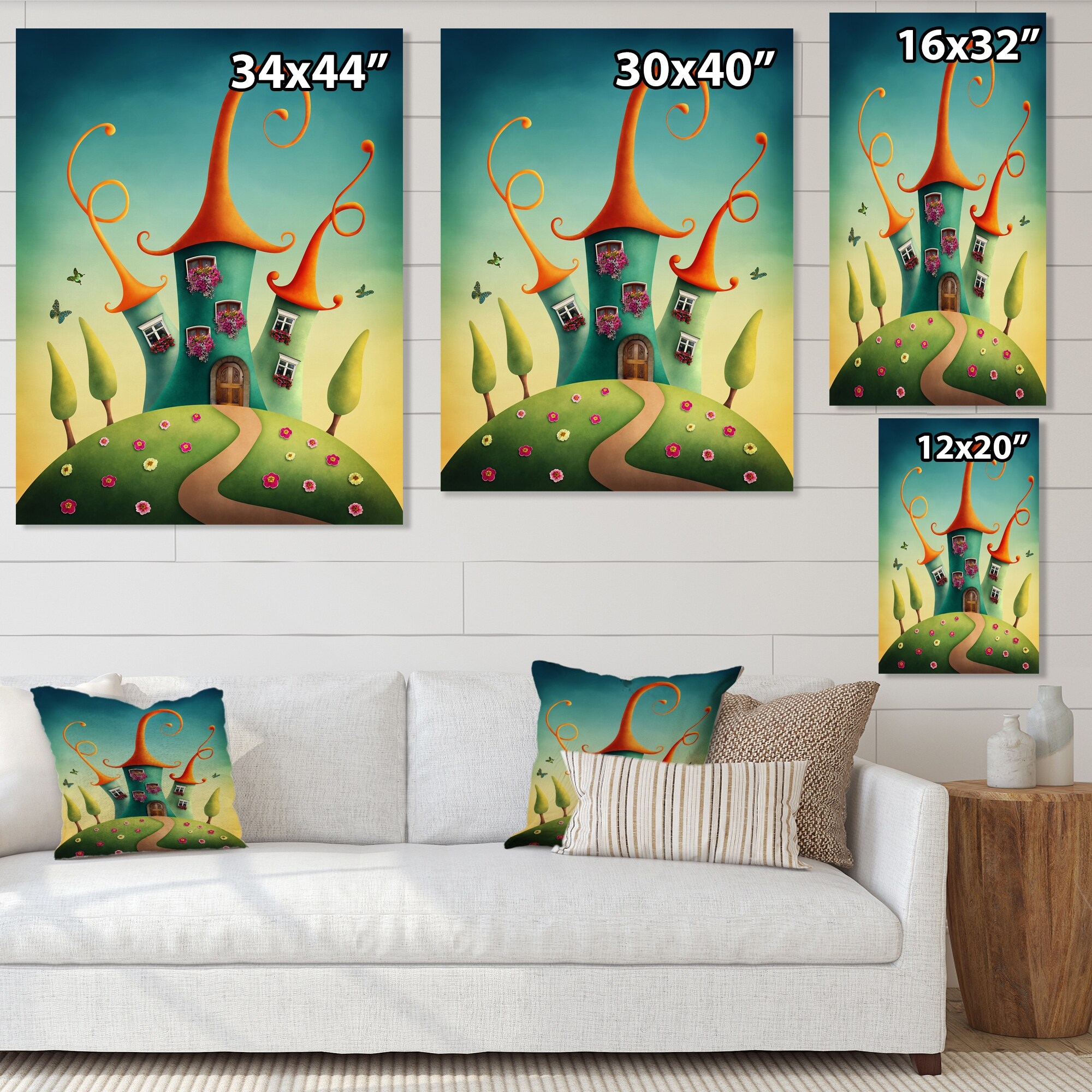 Designart "Blue Fantasy Castles With Red Roofs" Novelty Canvas Wall Art Print