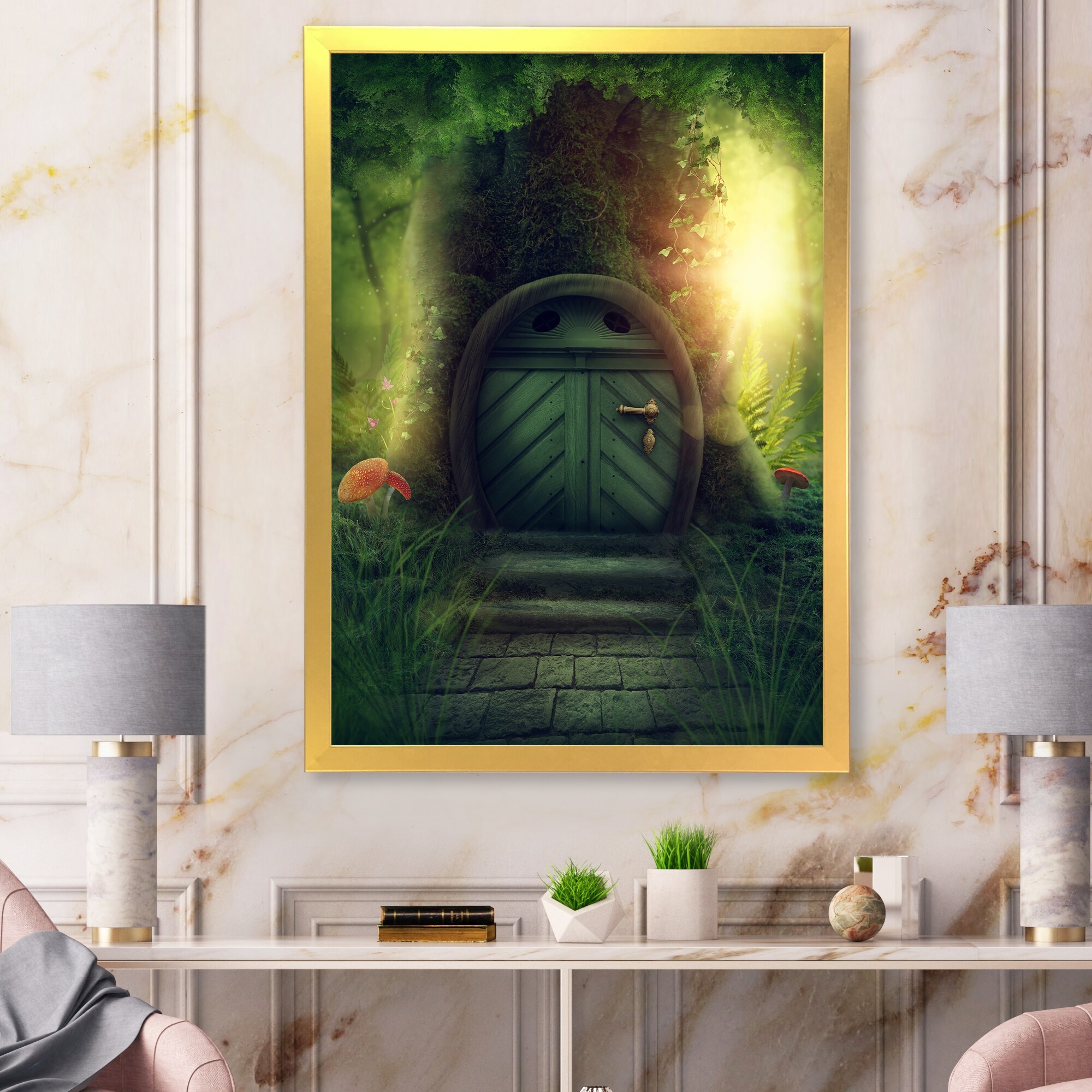 Designart "Door In Big Magic Tree" Novelty Framed Art Print