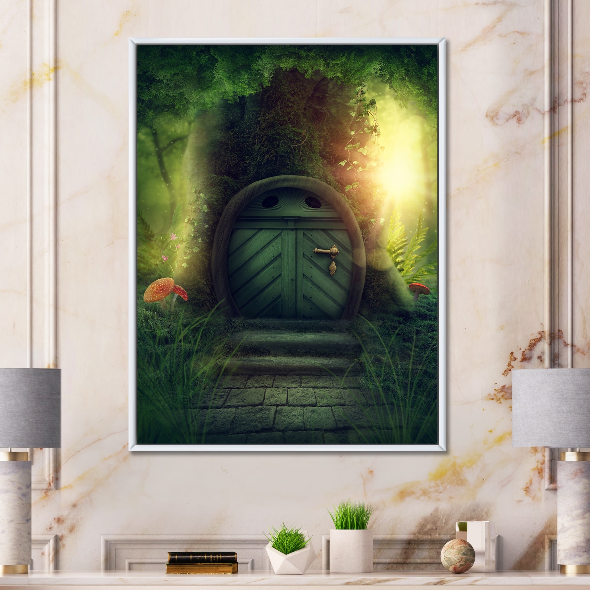 Designart "Door In Big Magic Tree" Novelty Framed Canvas Wall Art Print