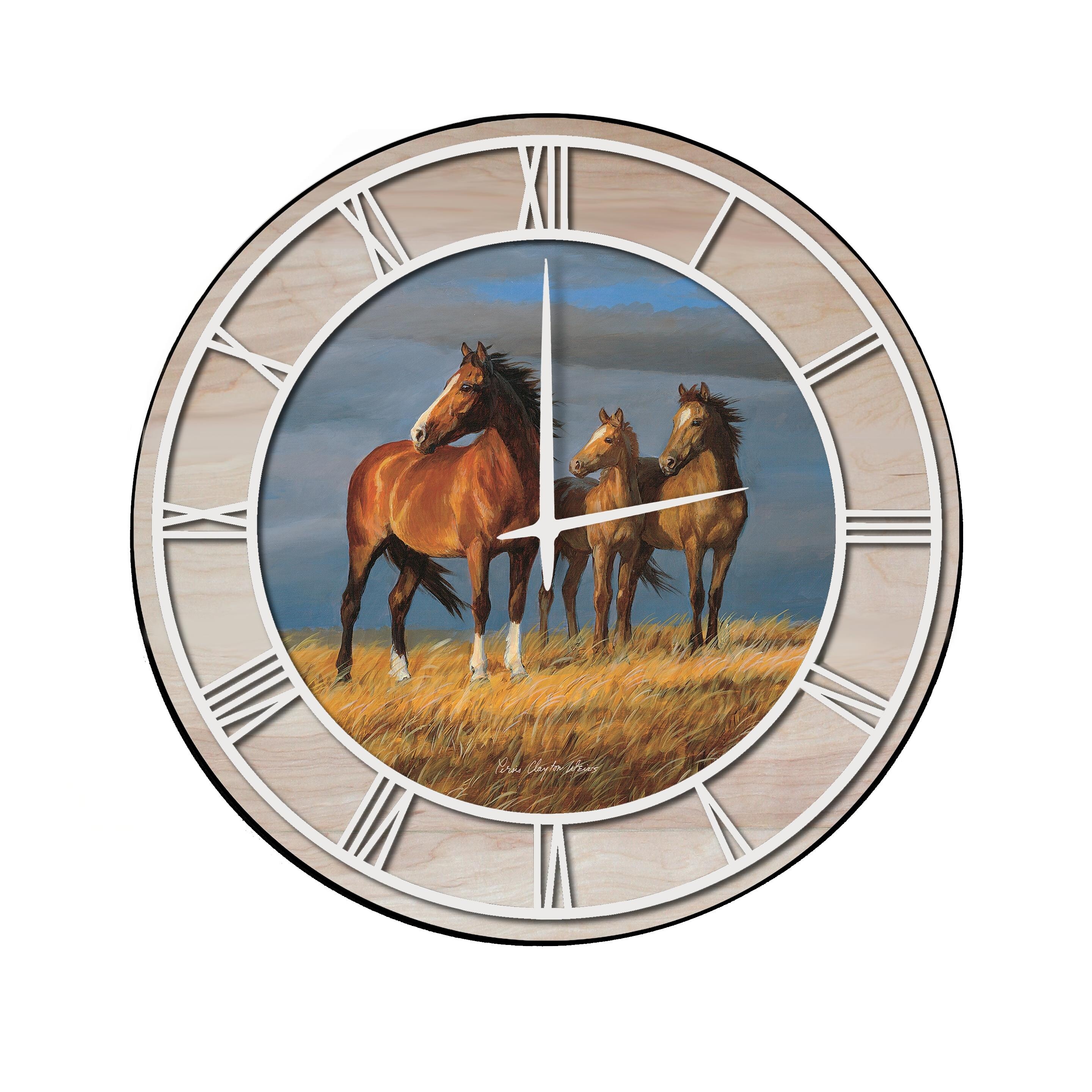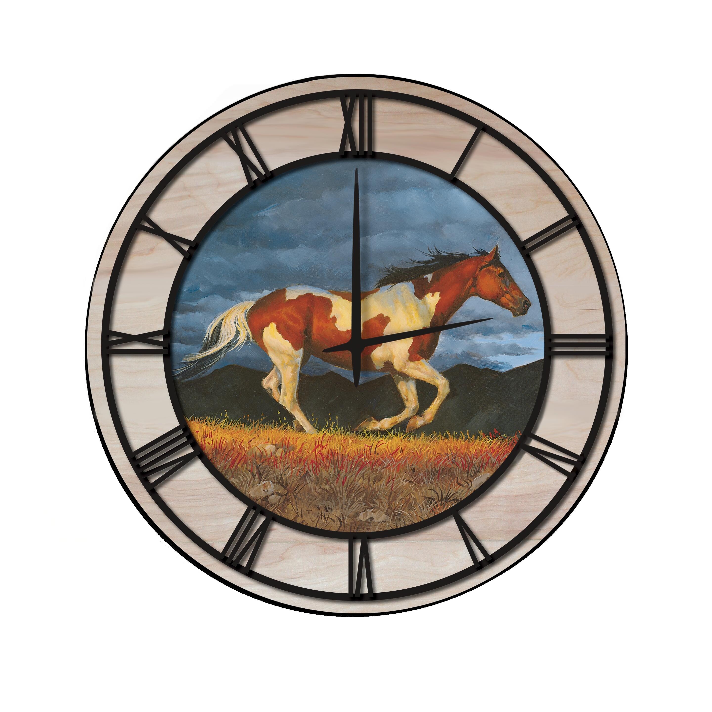 Wall Clock with Natural Woodgrain Accent - That Western Spirit - Black Numbers - 24" x 24"