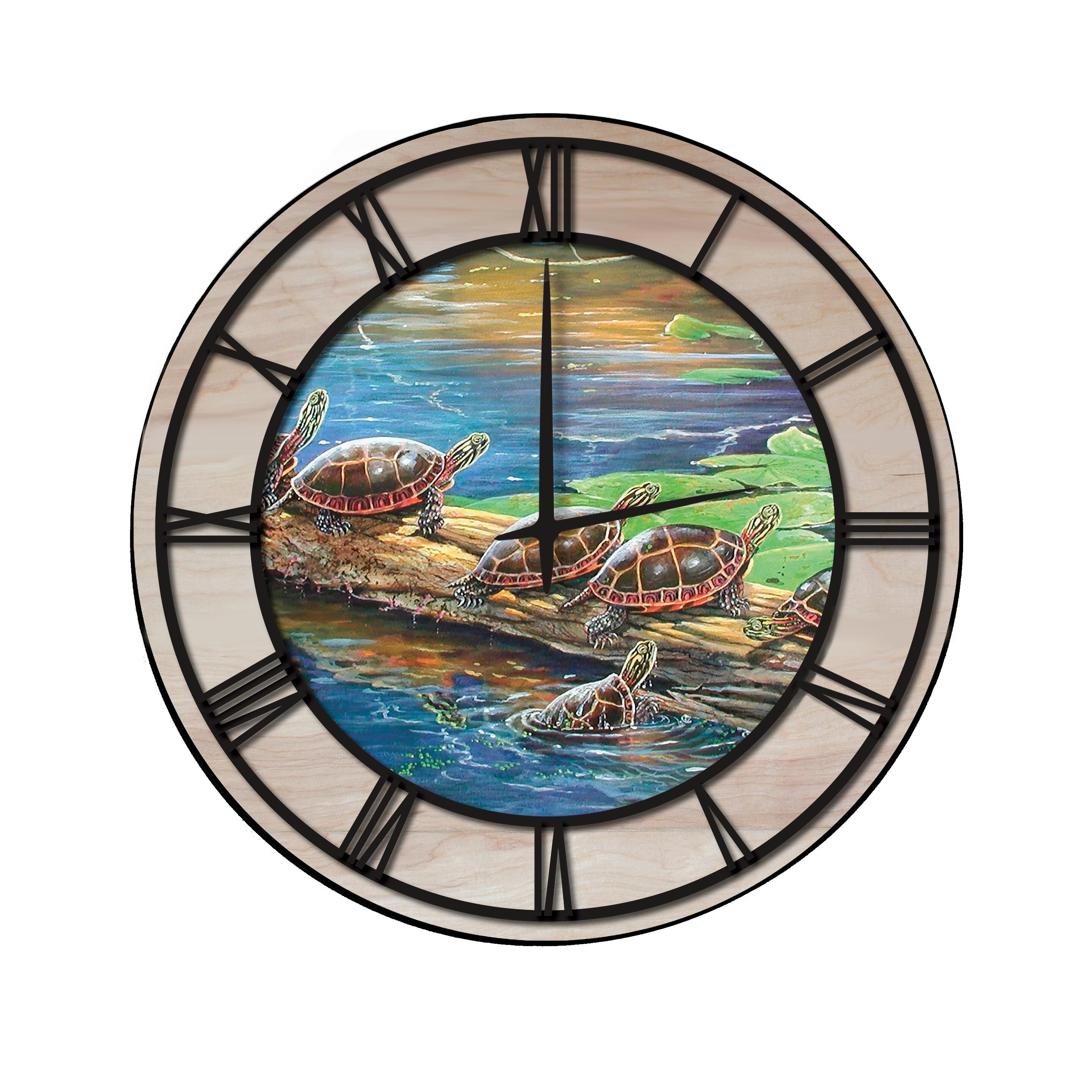 Wall Clock with Natural Woodgrain Accent - Lake Cabin - Black Numbers - 24" x 24"
