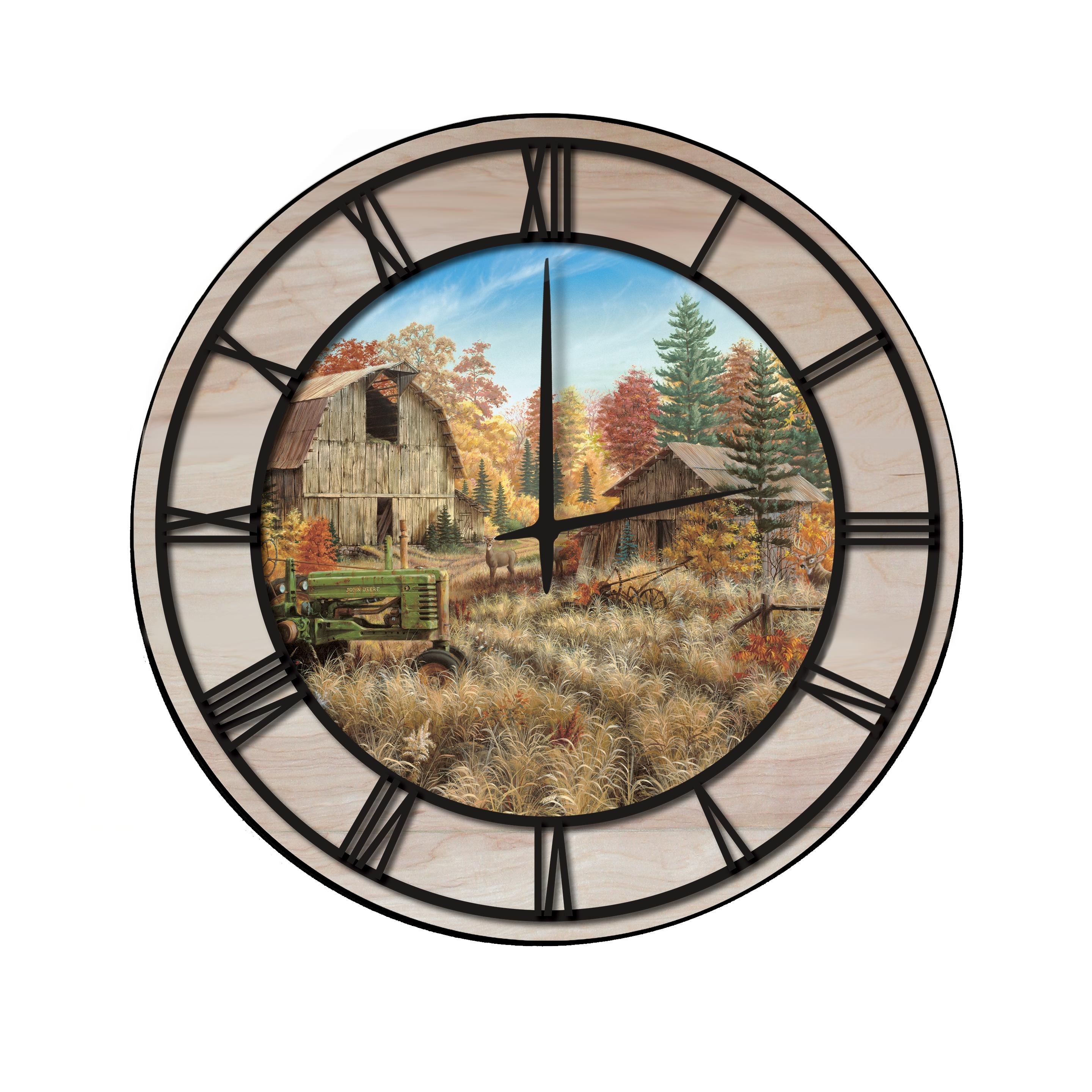 Wall Clock with Natural Woodgrain Accent - Enduring Legacy Barn - Black Numbers - 24" x 24"