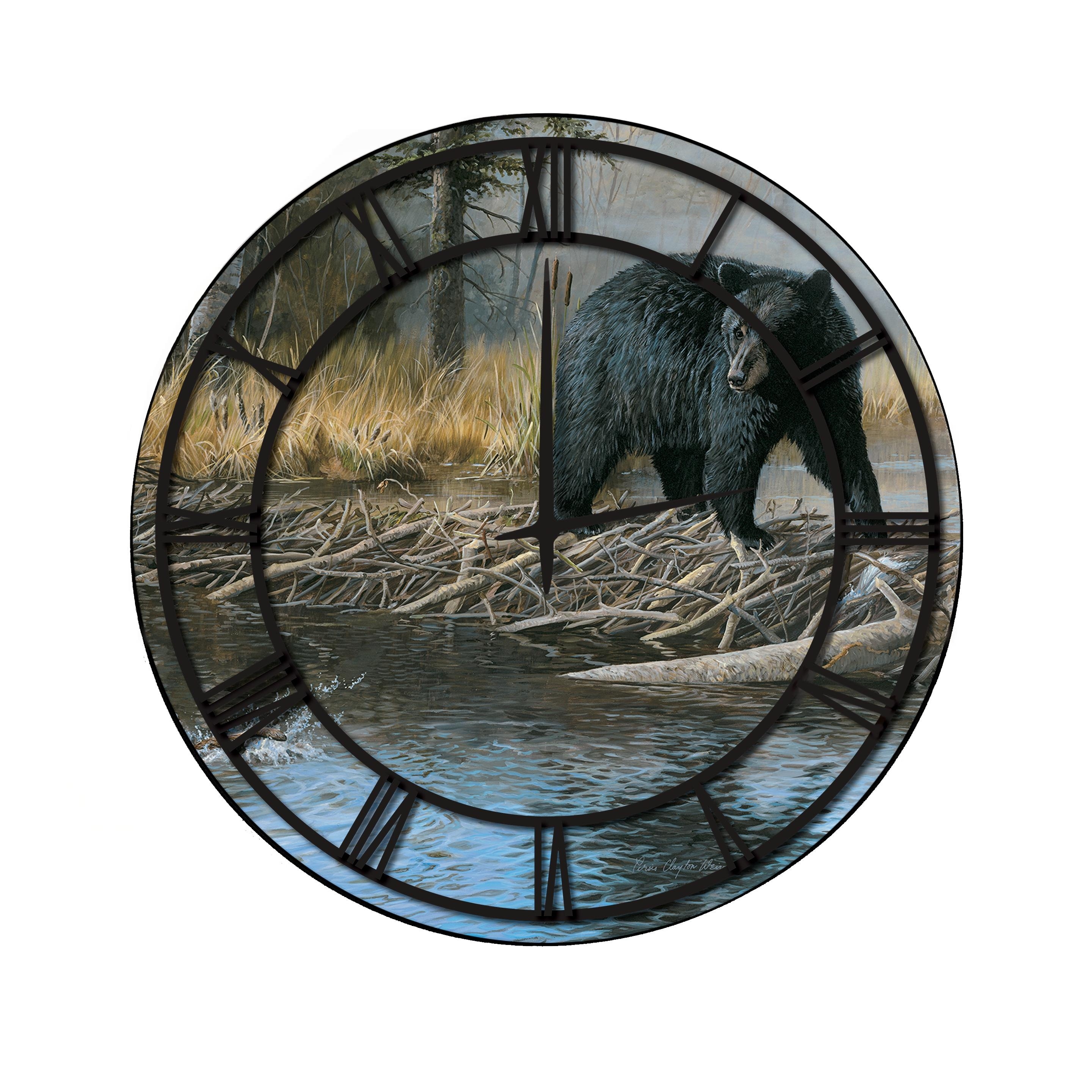 Wall Clock with Full Coverage Art - No Trespassing Bear - Black Numbers - 24" x 24"
