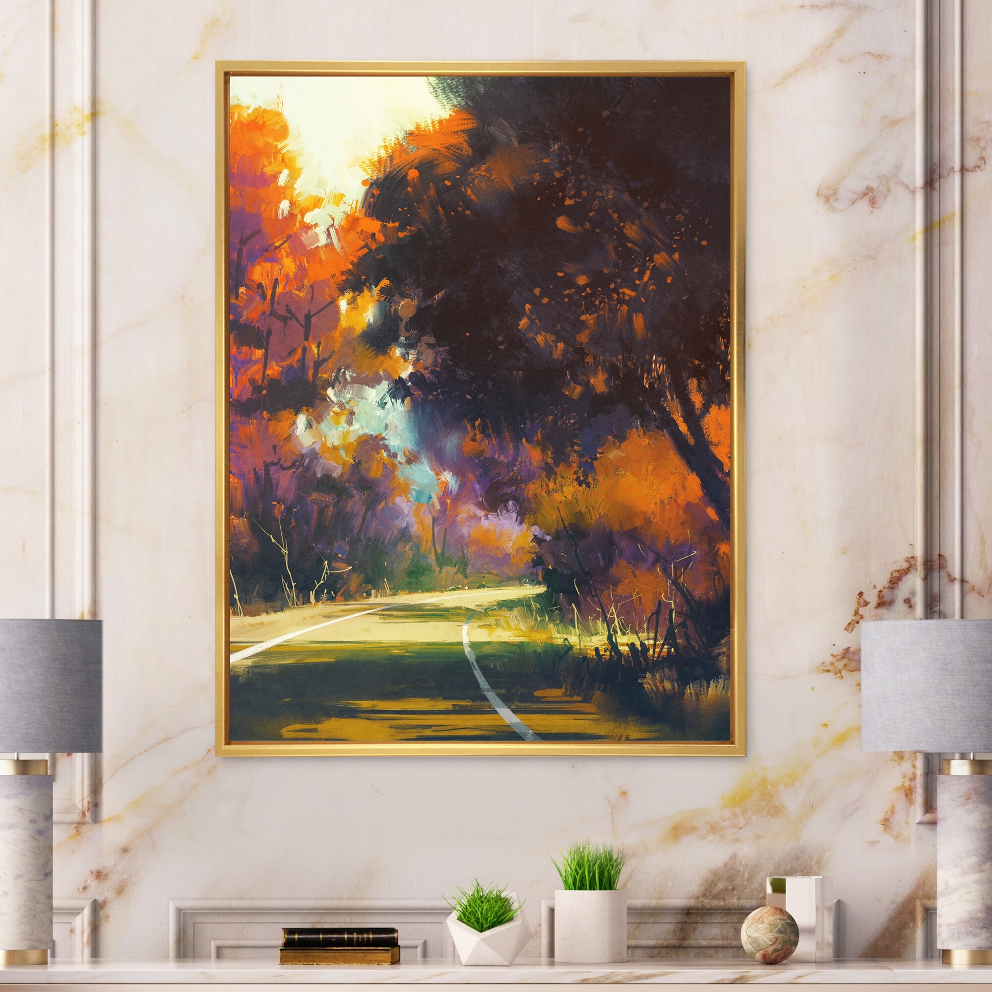 Designart "Road In Autumn Forest" Traditional Framed Canvas Wall Art Print