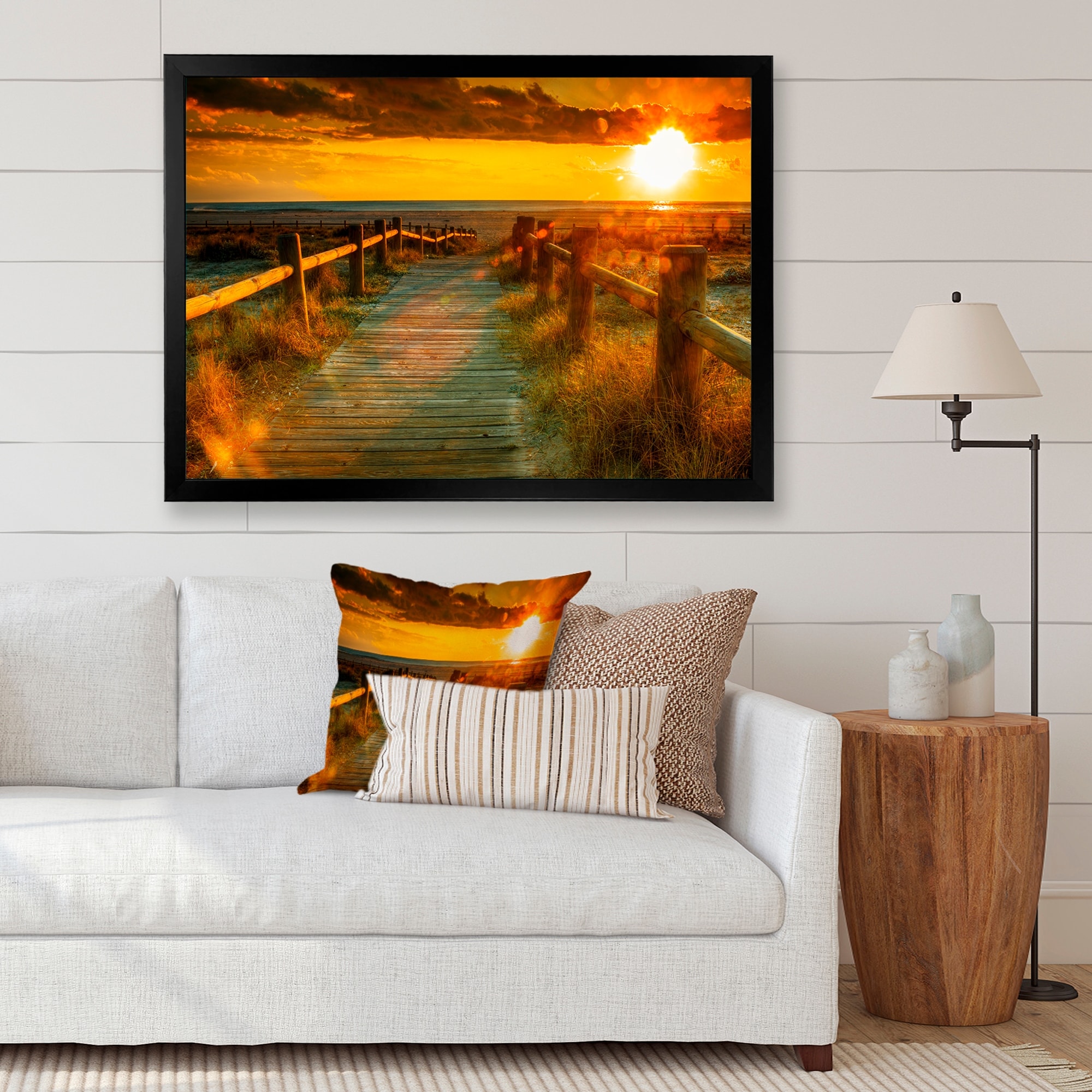 Designart "Little Road to the Beach During Sunset" Nautical & Coastal Framed Art Print