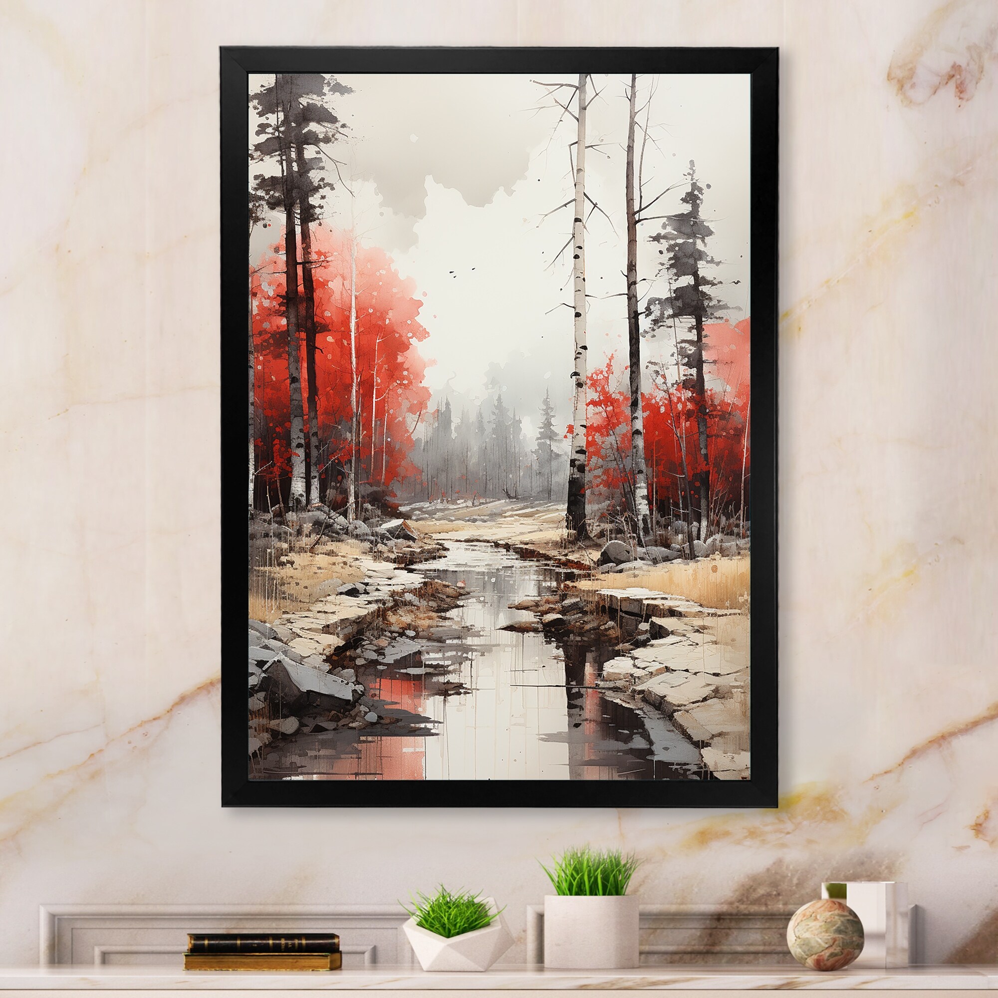 Designart "Country River Through Coral Forest" Road Framed Canvas Print