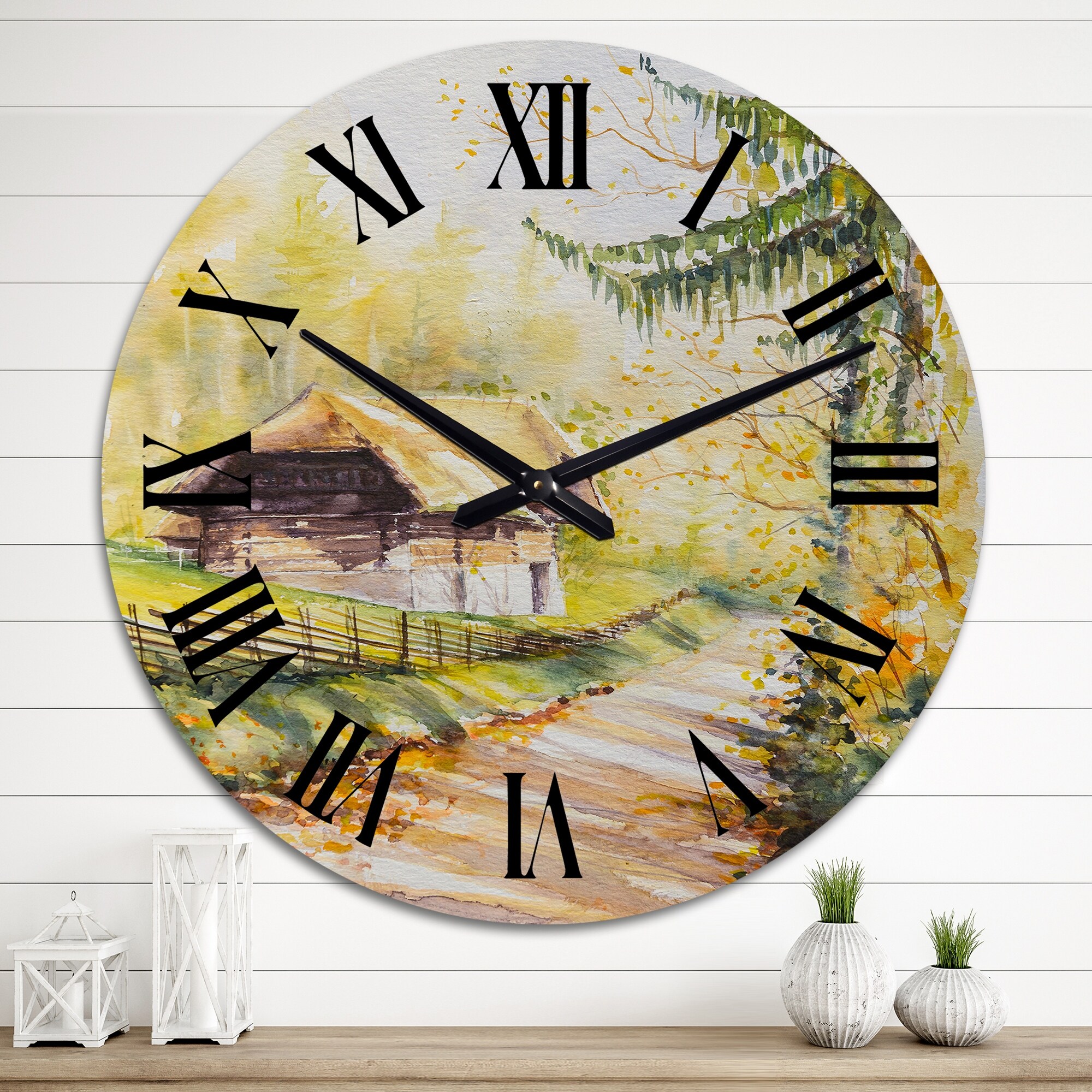 Designart 'Countryside With Old House Close to the Road' Country wall clock