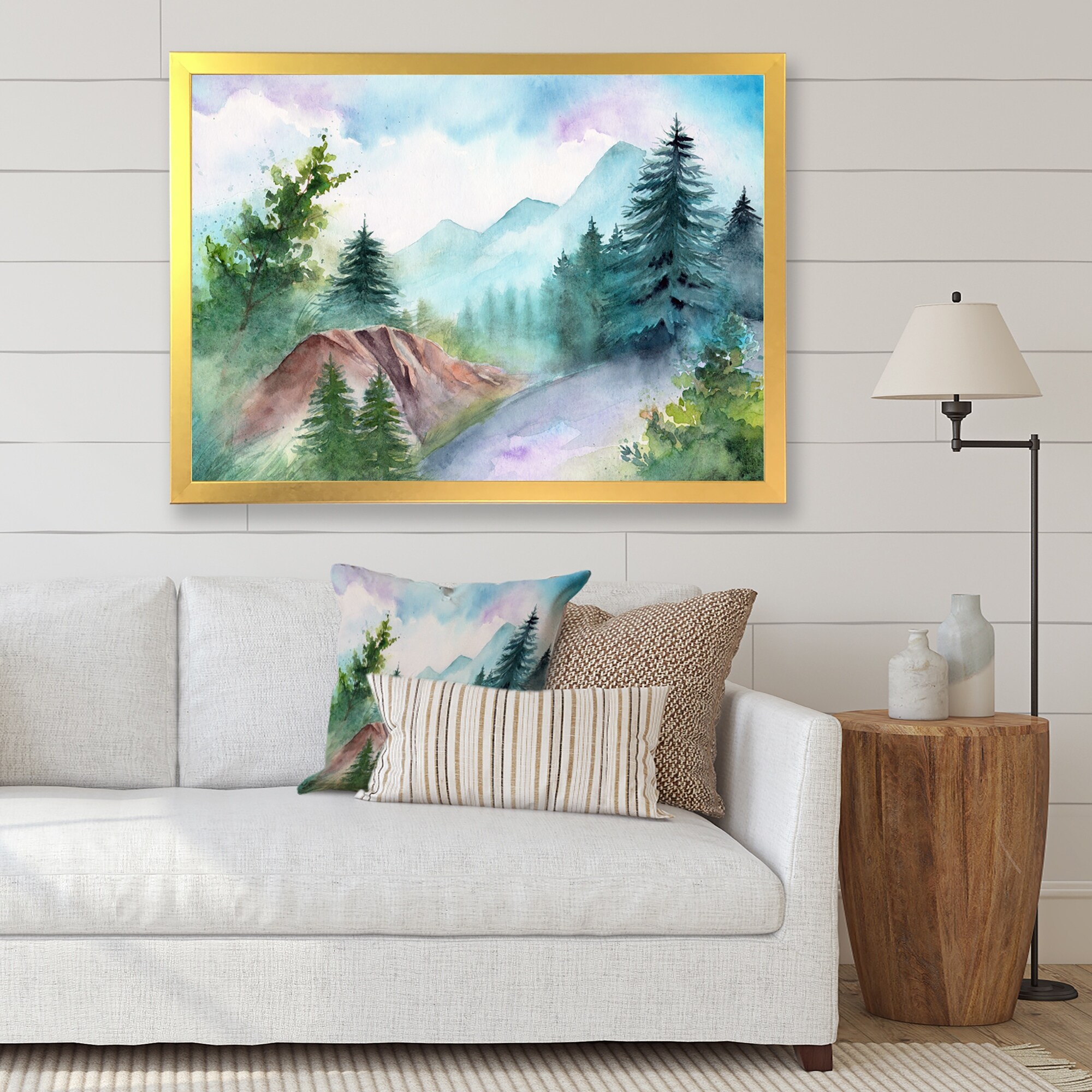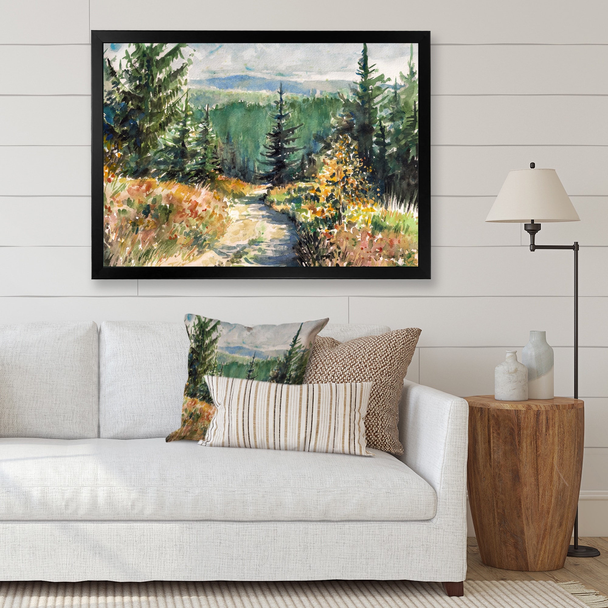 Designart "Landscape With Forest Road And Distant Mountains" Country Framed Art Print