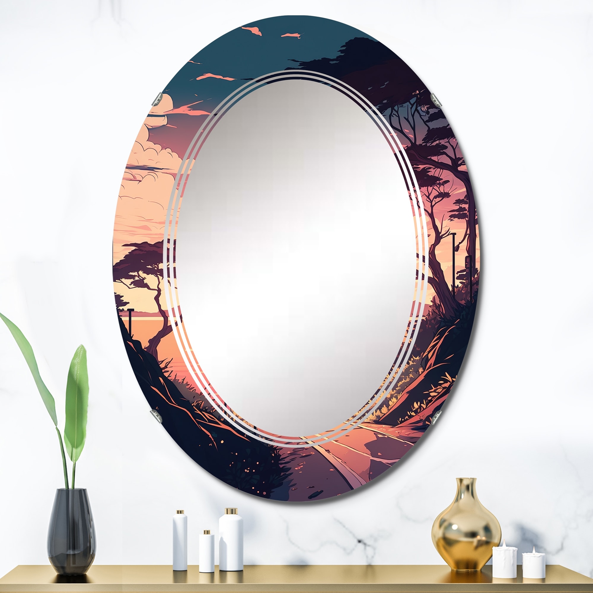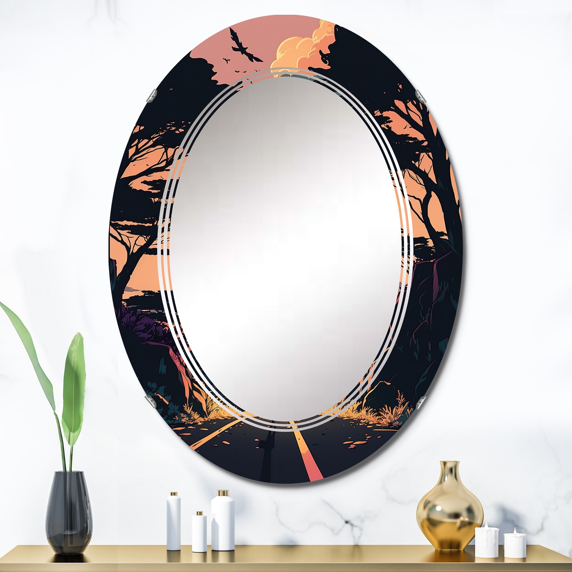 Designart 'Road To the Sunset I' Printed Modern Landscape Beach Wall Mirror