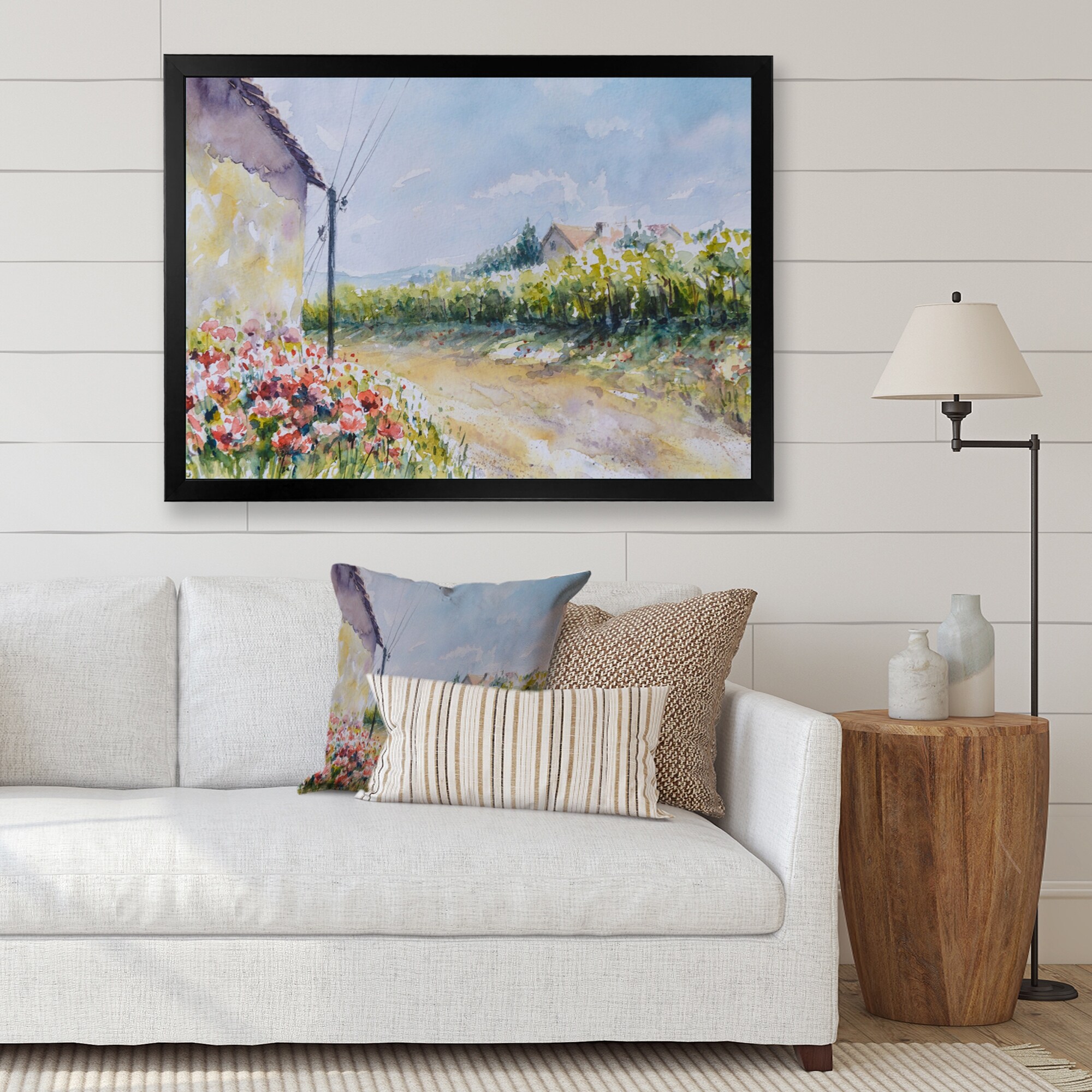 Designart "Poppy Flowers By A Countryside Road" Country Framed Art Print