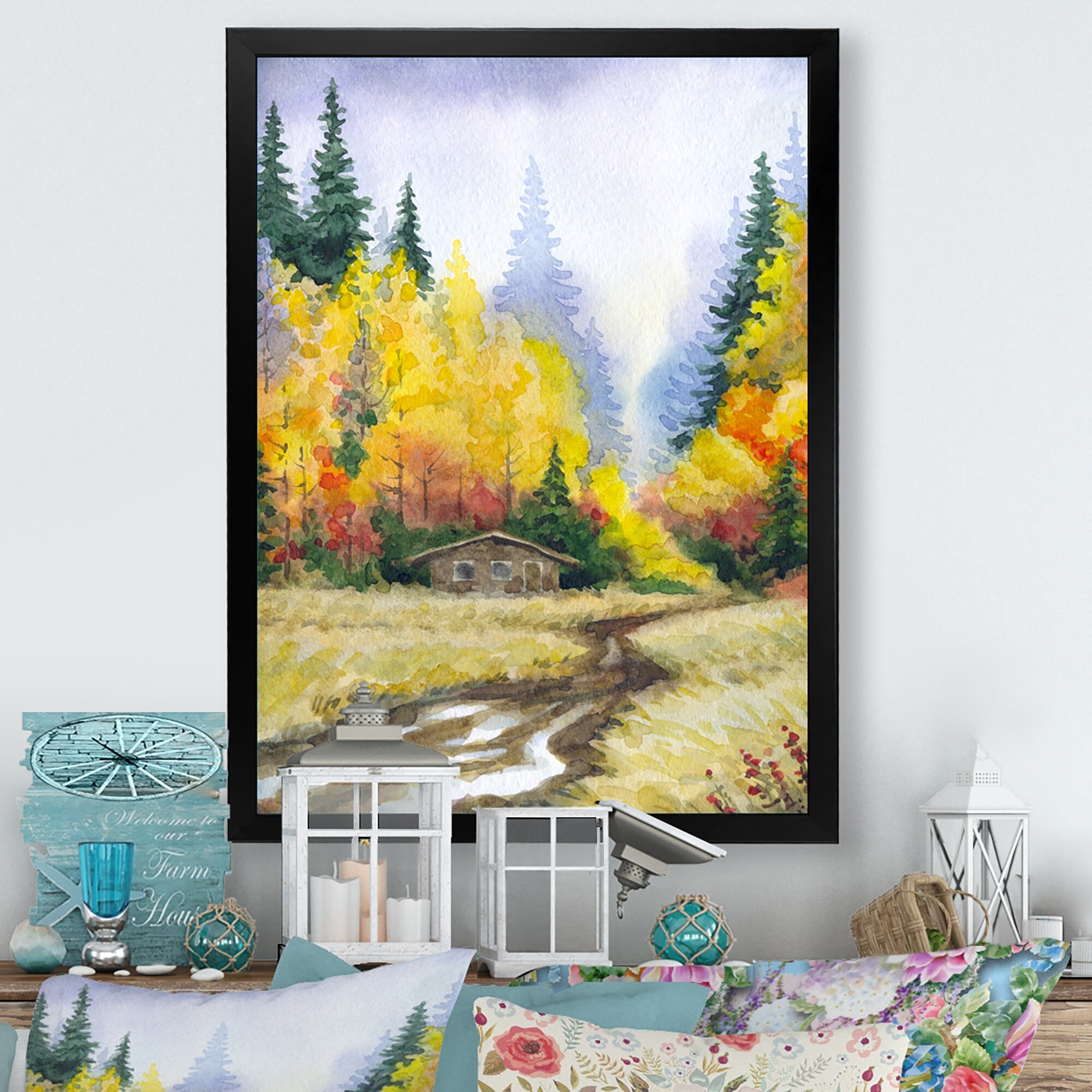 Designart "Road To Our Cottage in Autumn" Traditional Framed Art Print