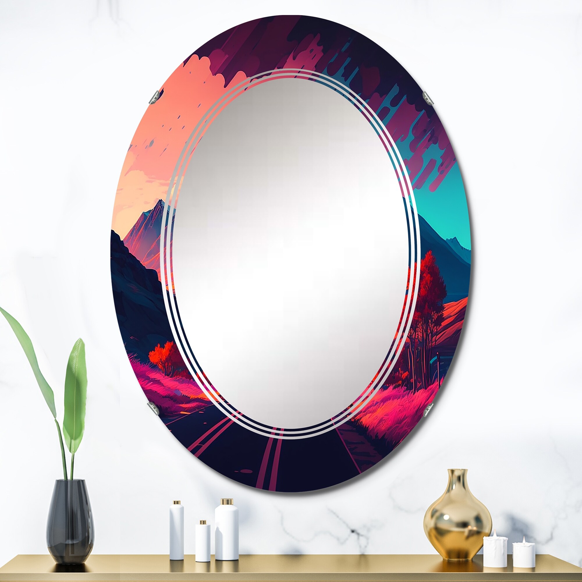 Designart 'Magenta Autumn Morning Road II' Printed Landscape Mountains Wall Mirror
