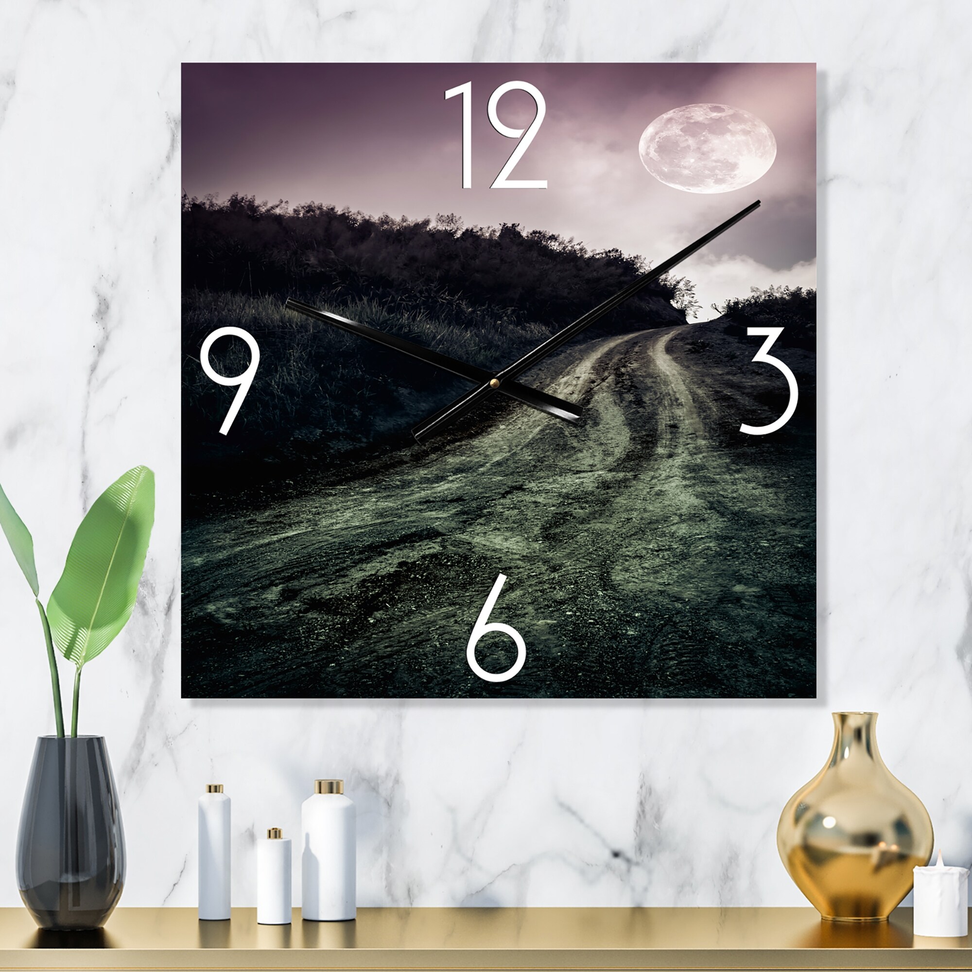 Designart 'Muddy Road Under Full Moon' Modern Wall Clock Decor