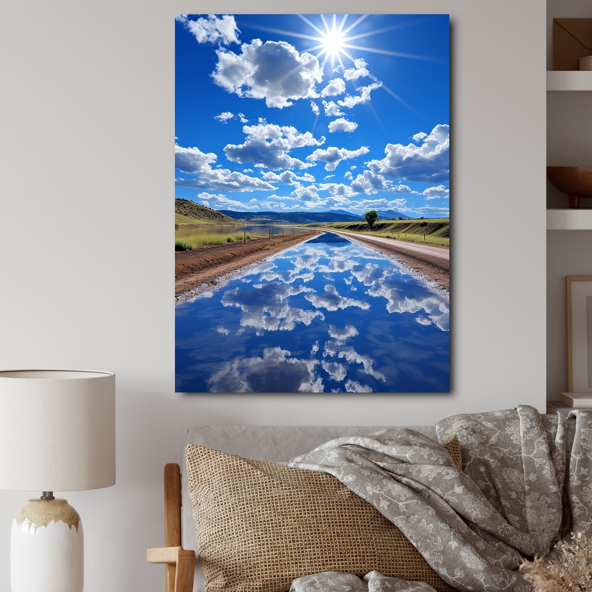 Designart "Blue Sky Reflection Over Road" Road Canvas Prints