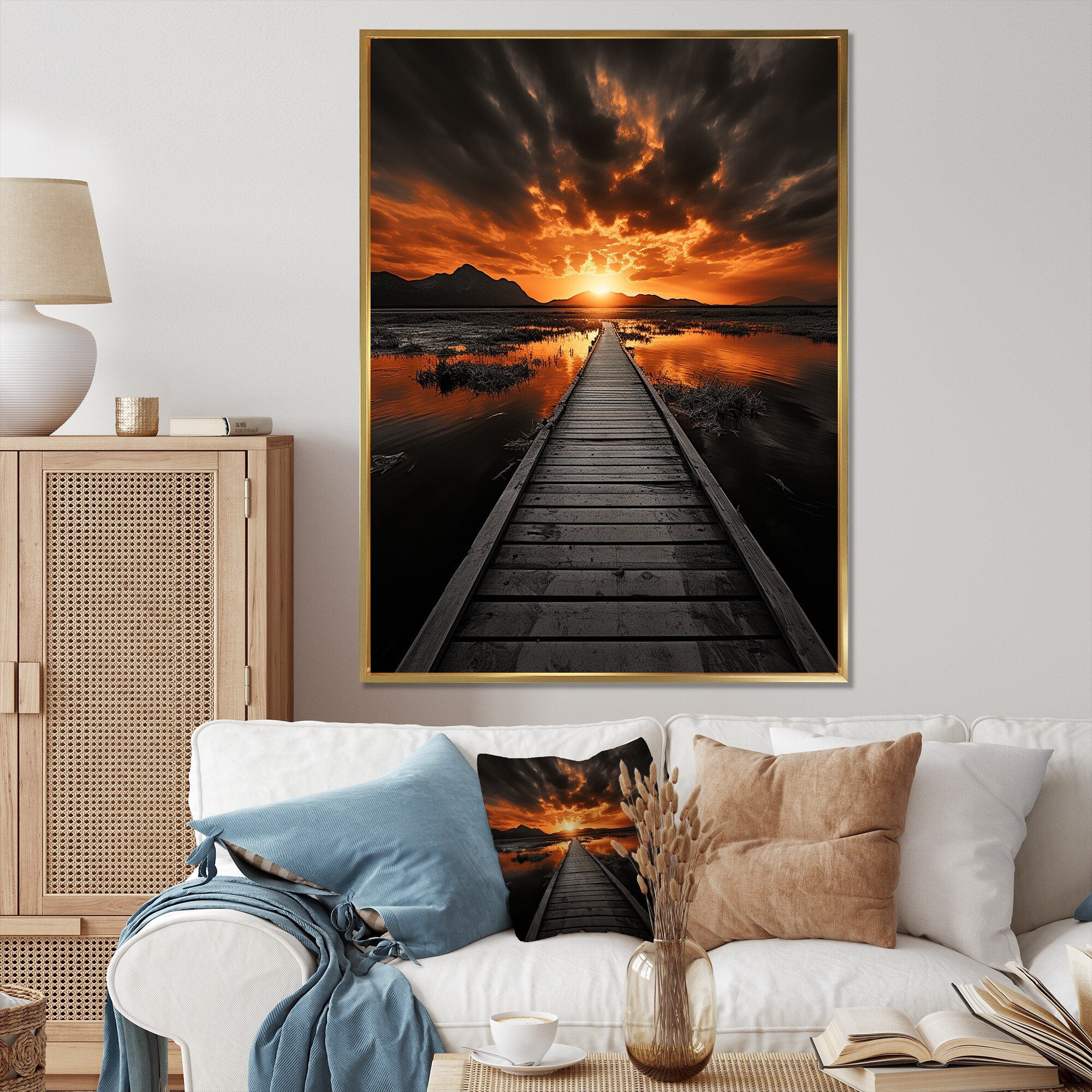 Designart "Orange Sunrise Road" Road Framed Canvas Prints