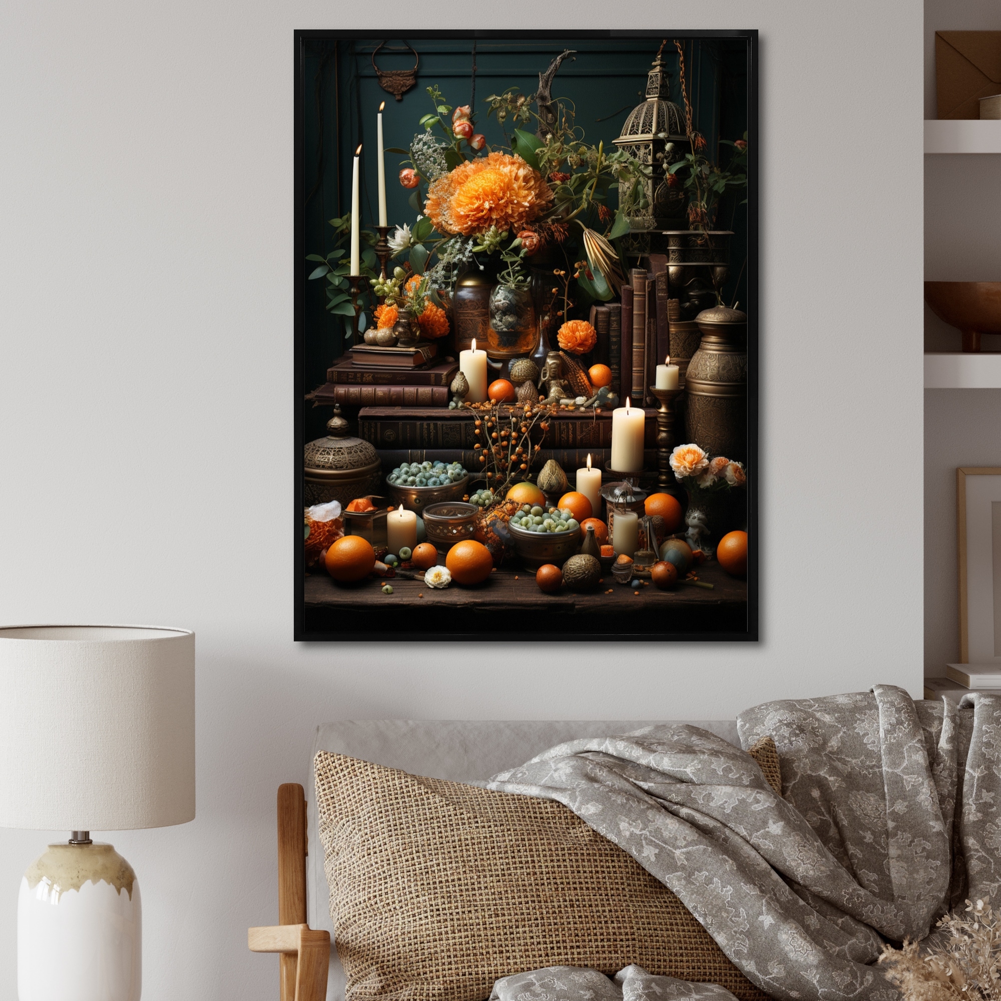 Designart "Folk Religion Sacred Offerings I" Folk Religion Framed Canvas Art Print