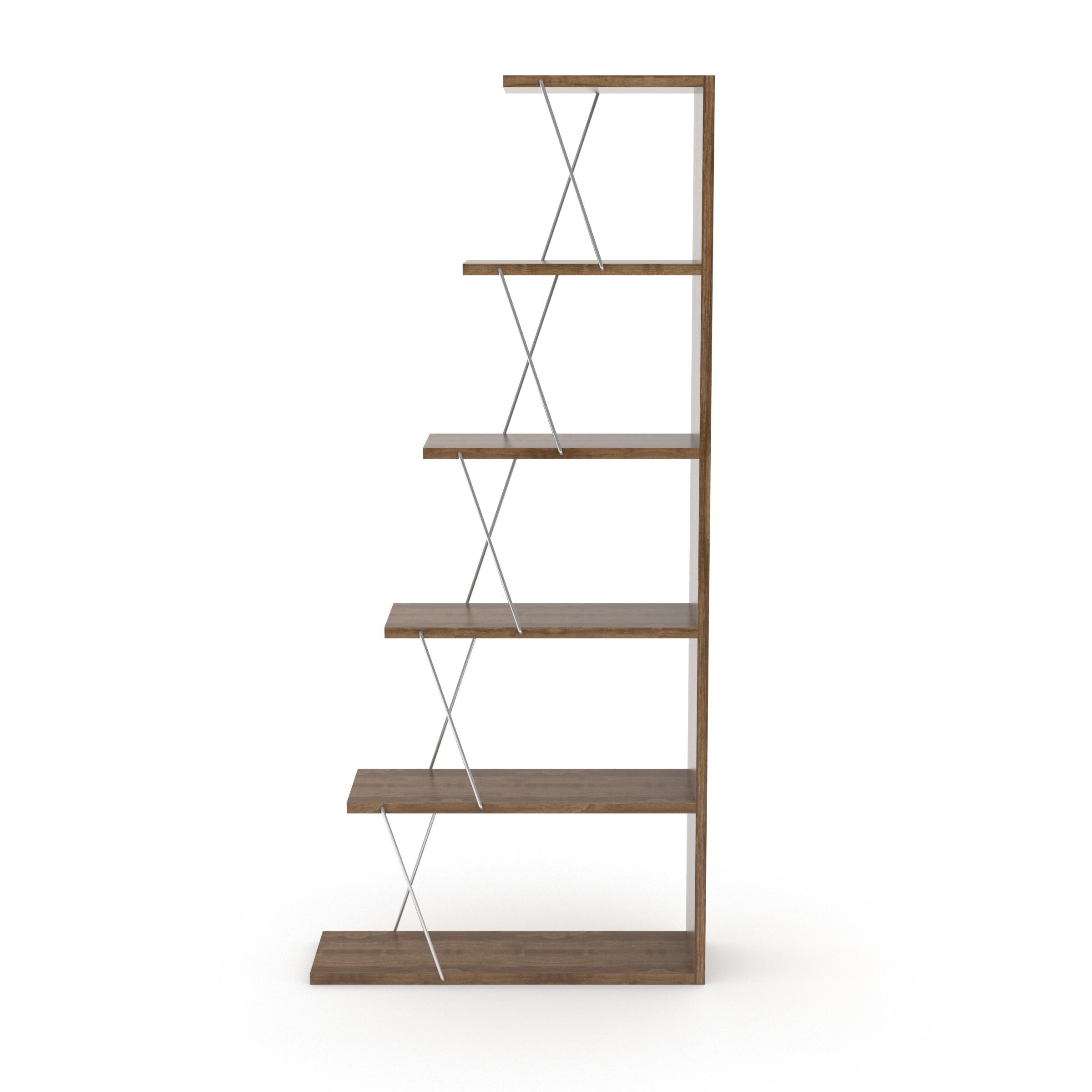 5 Tier Ladder Narrow Bookshelf Organizers for Small Spaces Office Furniture, Walnut/Chrome