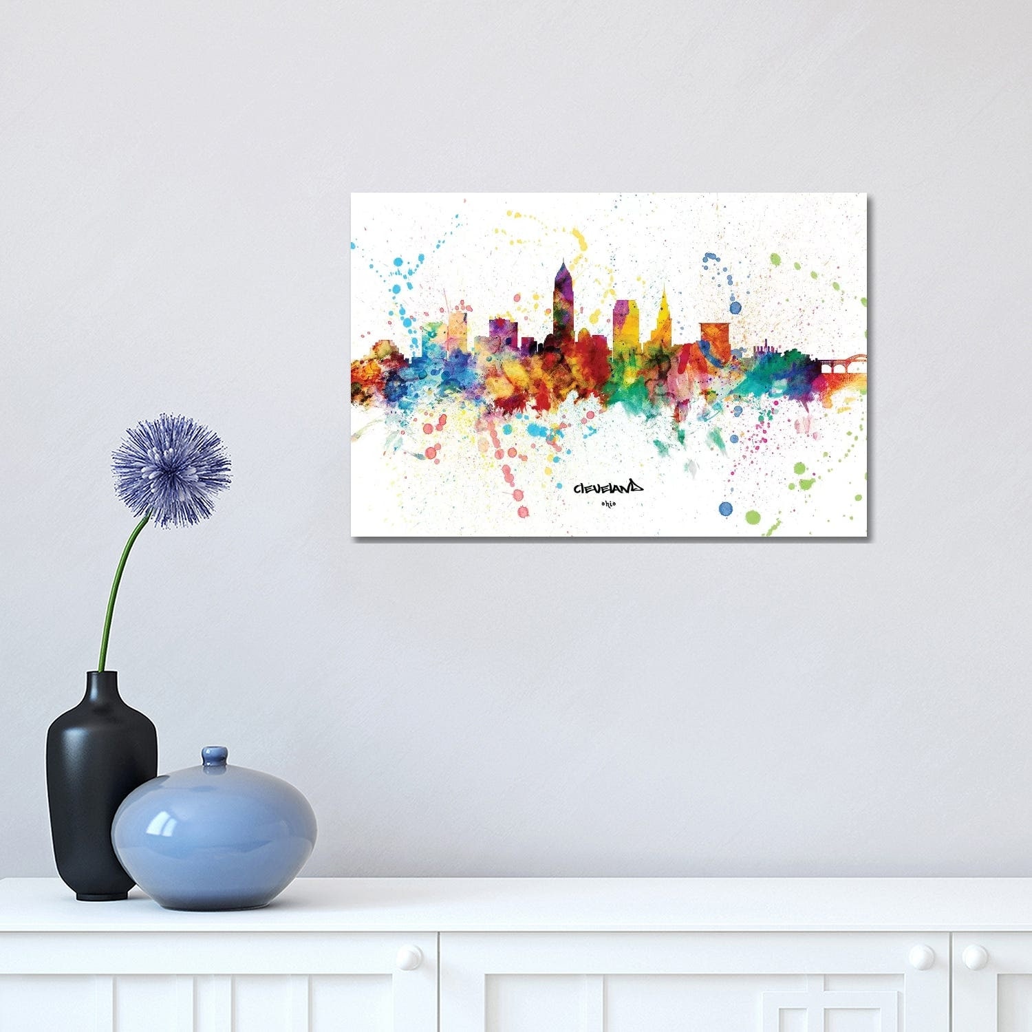 iCanvas "Cleveland Ohio Skyline Splash" by Michael Tompsett Canvas Print