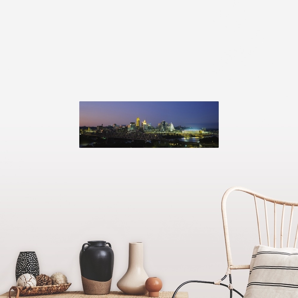 "Buildings lit up at night, Cincinnati, Ohio" Poster Print