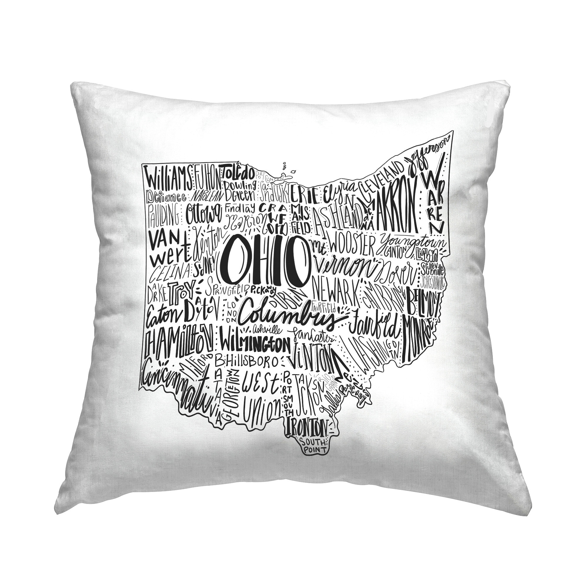 Stupell Industries Ohio State Typography Cities Map Shape Printed Throw Pillow by Saturday Evening Post