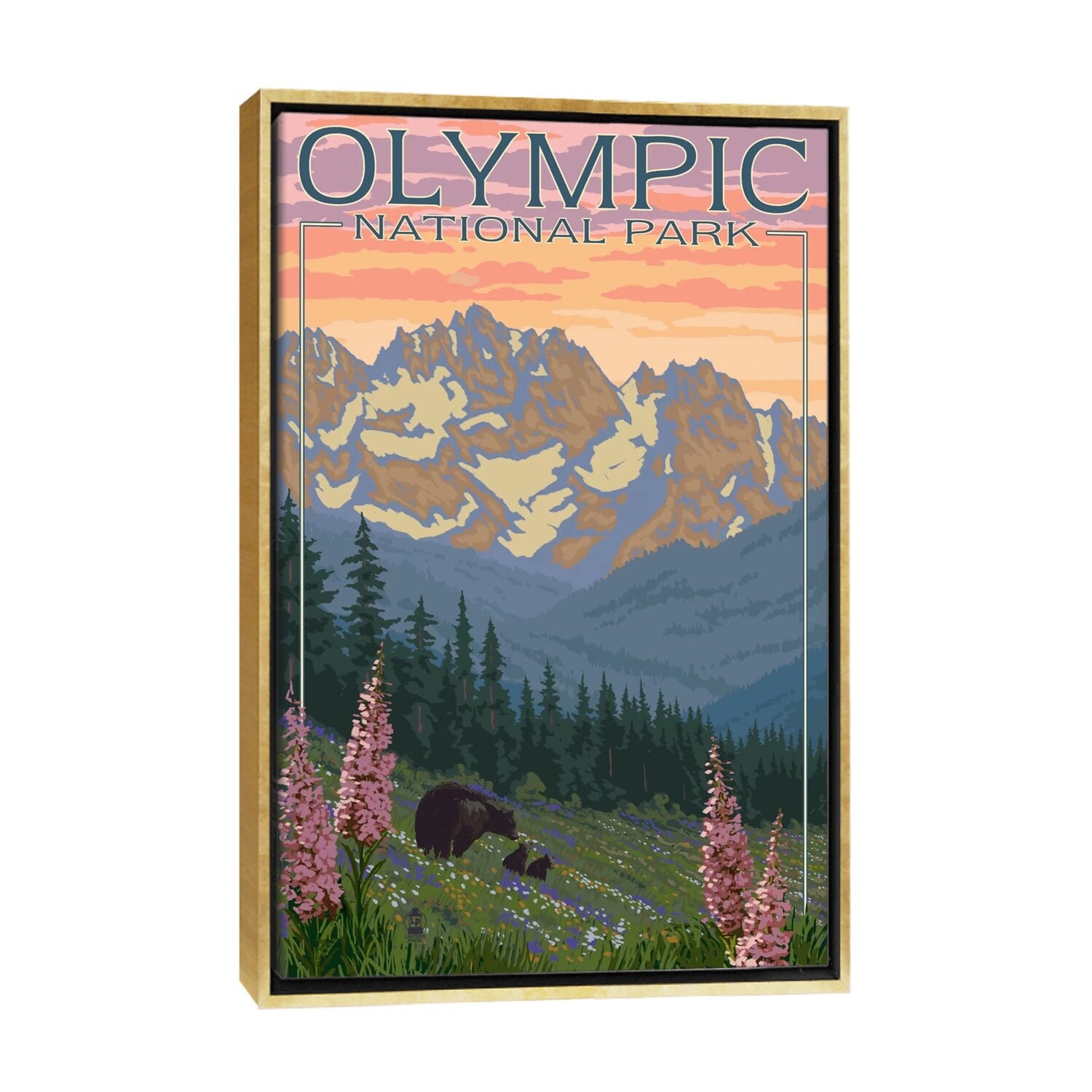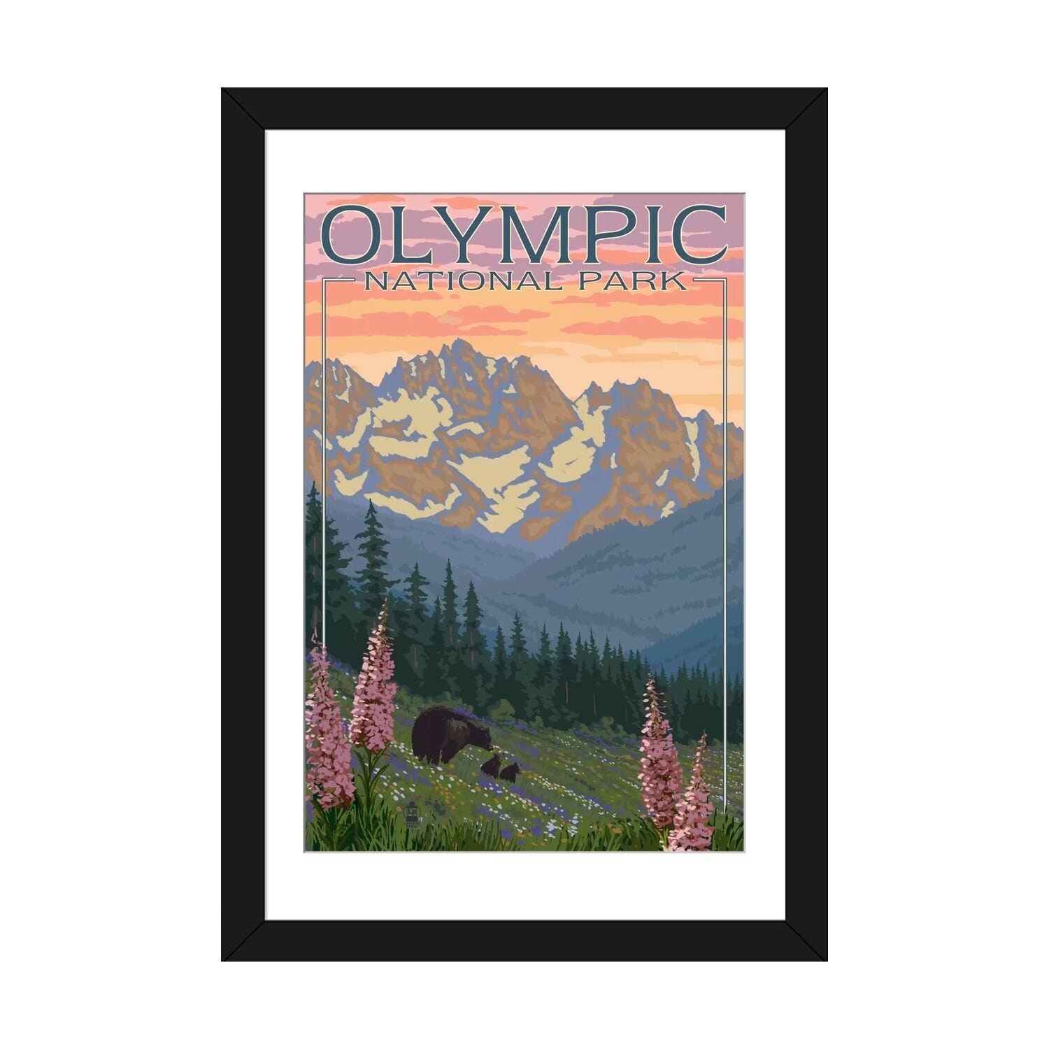 iCanvas "Olympic National Park (Black Bear Family)" by Lantern Press Framed Canvas Print