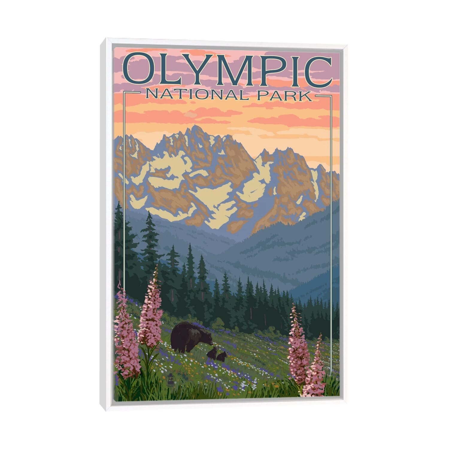 iCanvas "Olympic National Park (Black Bear Family)" by Lantern Press Framed Canvas Print