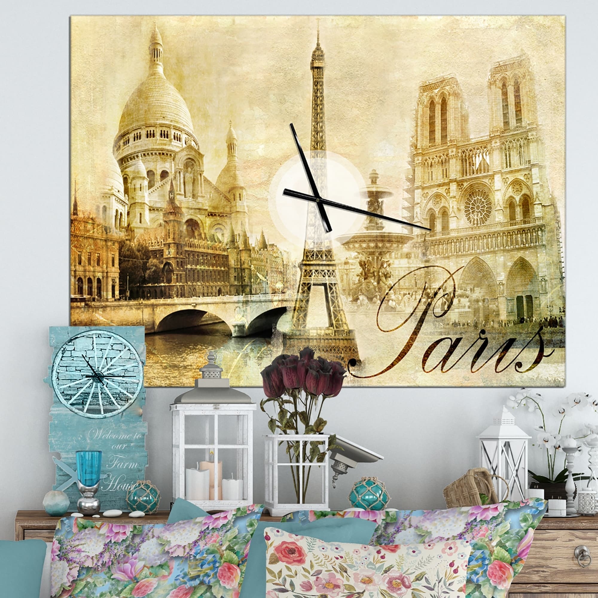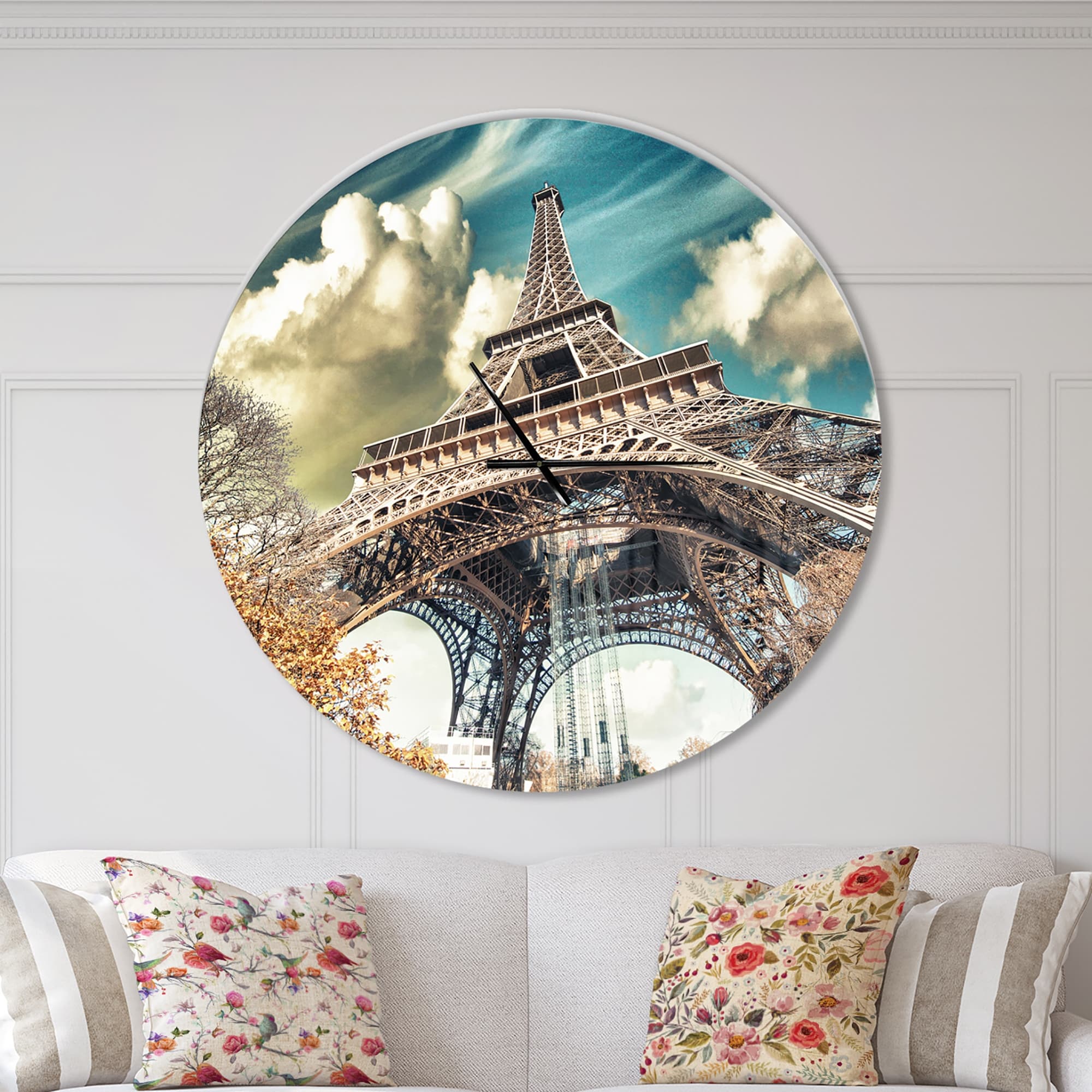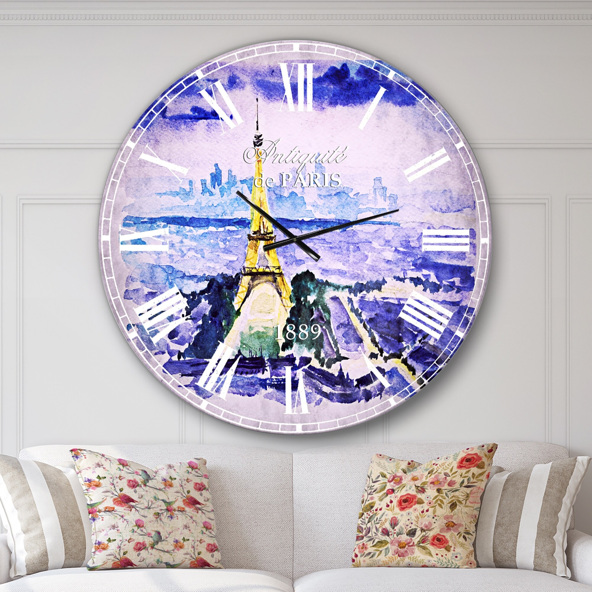 Designart 'Street View of Paris Eiffel Tower' Oversized French Country Wall CLock