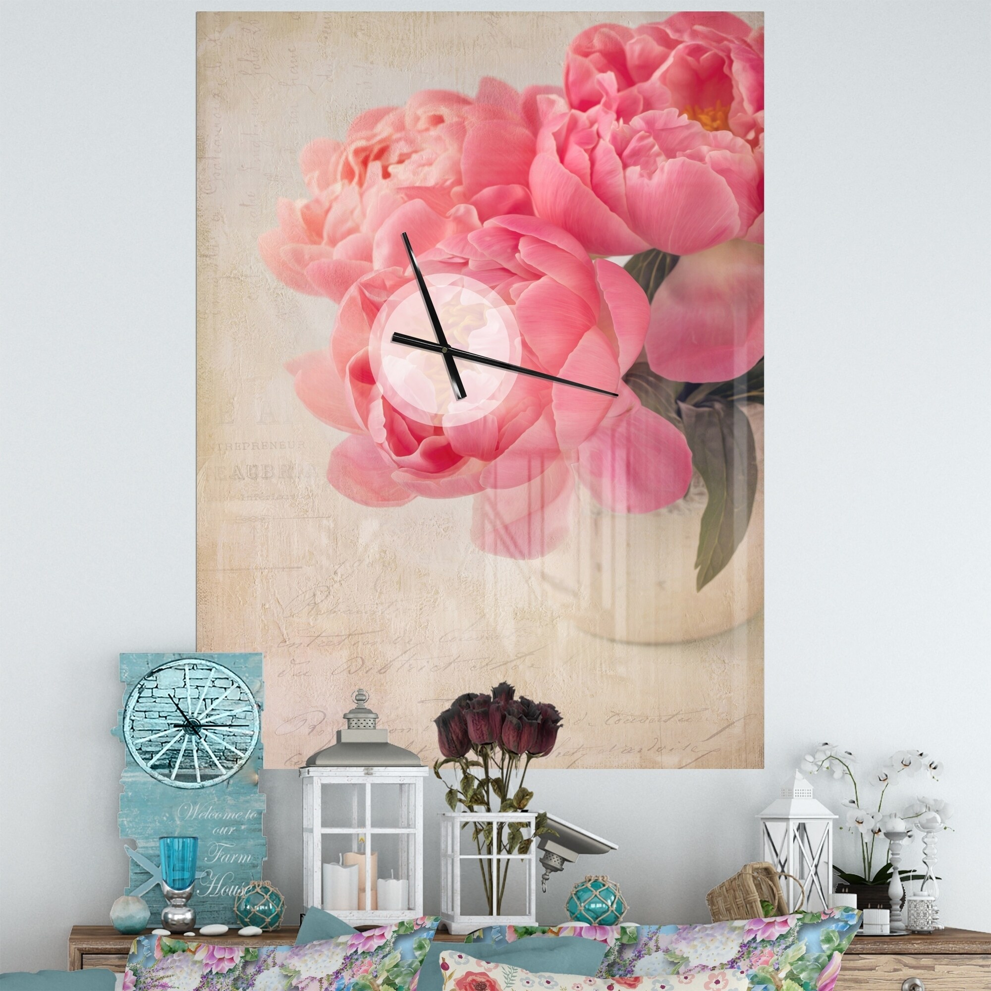 Designart 'Bunch of Colorful Peony Flowers' Oversized Floral Wall CLock