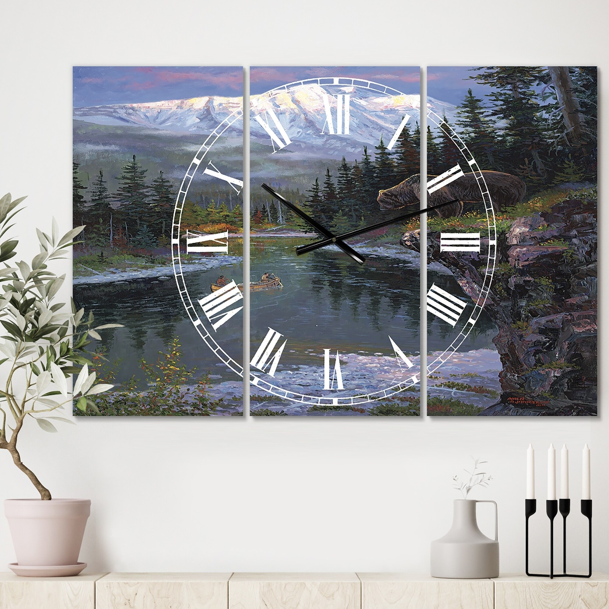 Designart 'Southfork Grizzly' Oversized Traditional Wall Clock - 3 Panels - 36 in. wide x 28 in. high - 3 Panels
