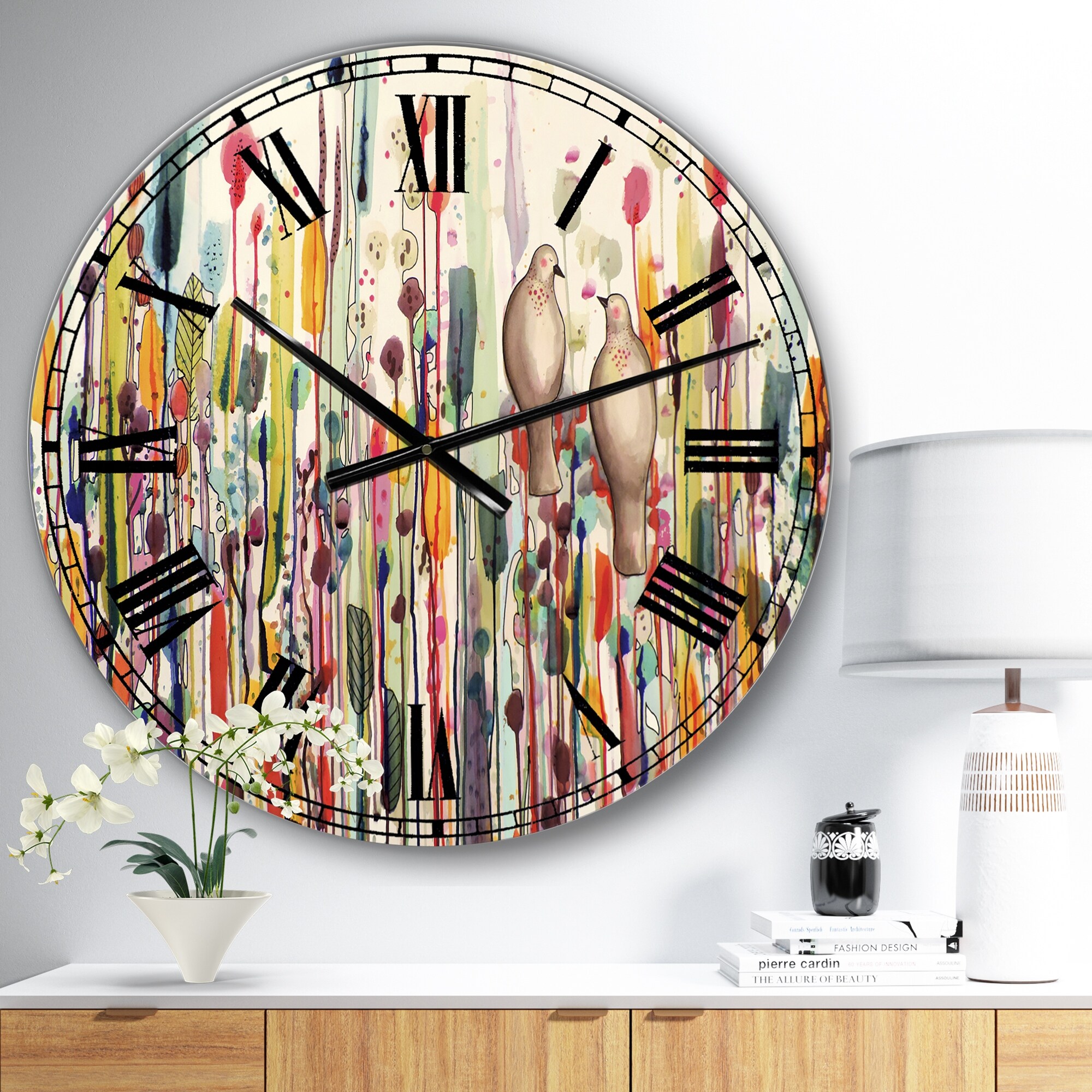 Designart 'Concerto For Birds' Oversized Mid-Century Wall Clock