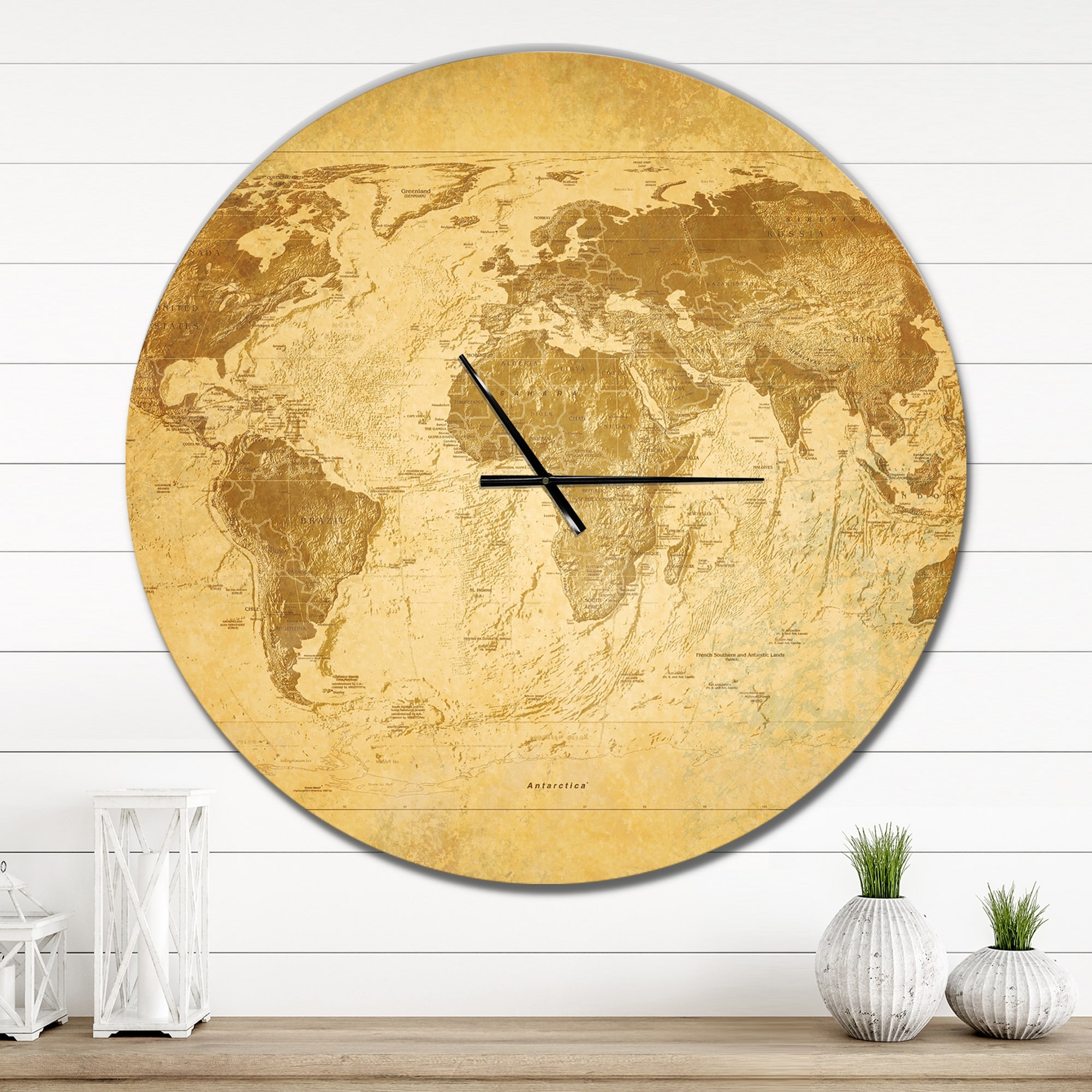 Designart 'Vintage Classic Map' Oversized Global Wall CLock