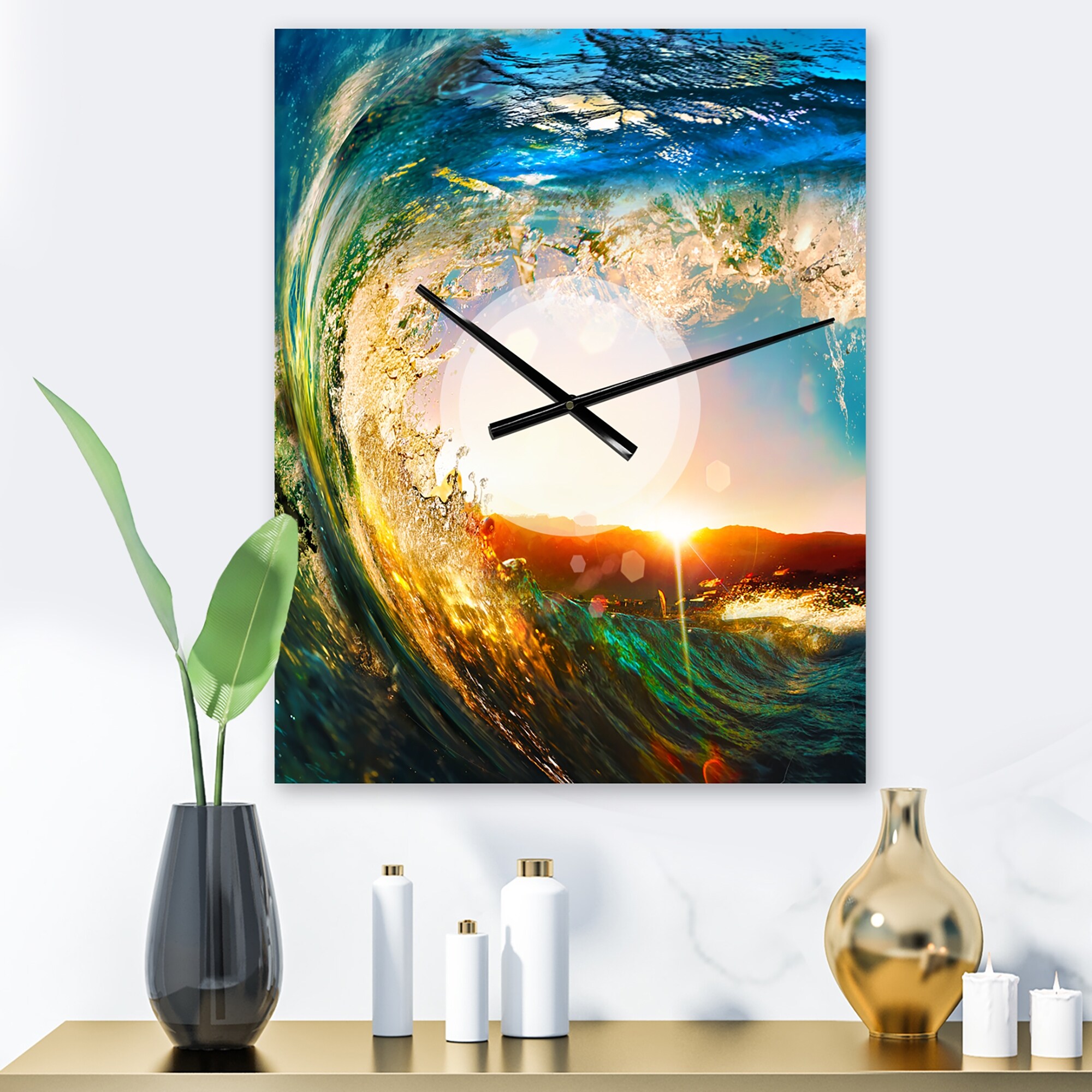 Designart 'Colored Ocean Waves Falling Down' Oversized Coastal Wall CLock