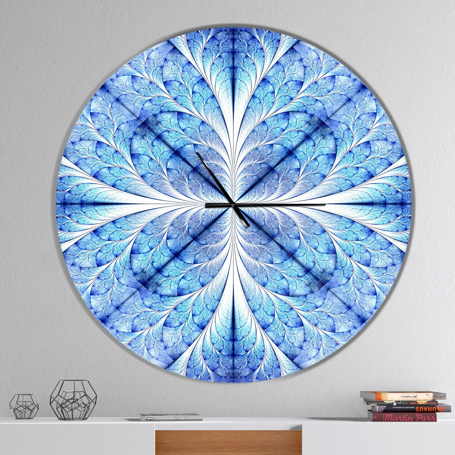 Designart 'Fractal Blue Flowers' Oversized Modern Wall CLock