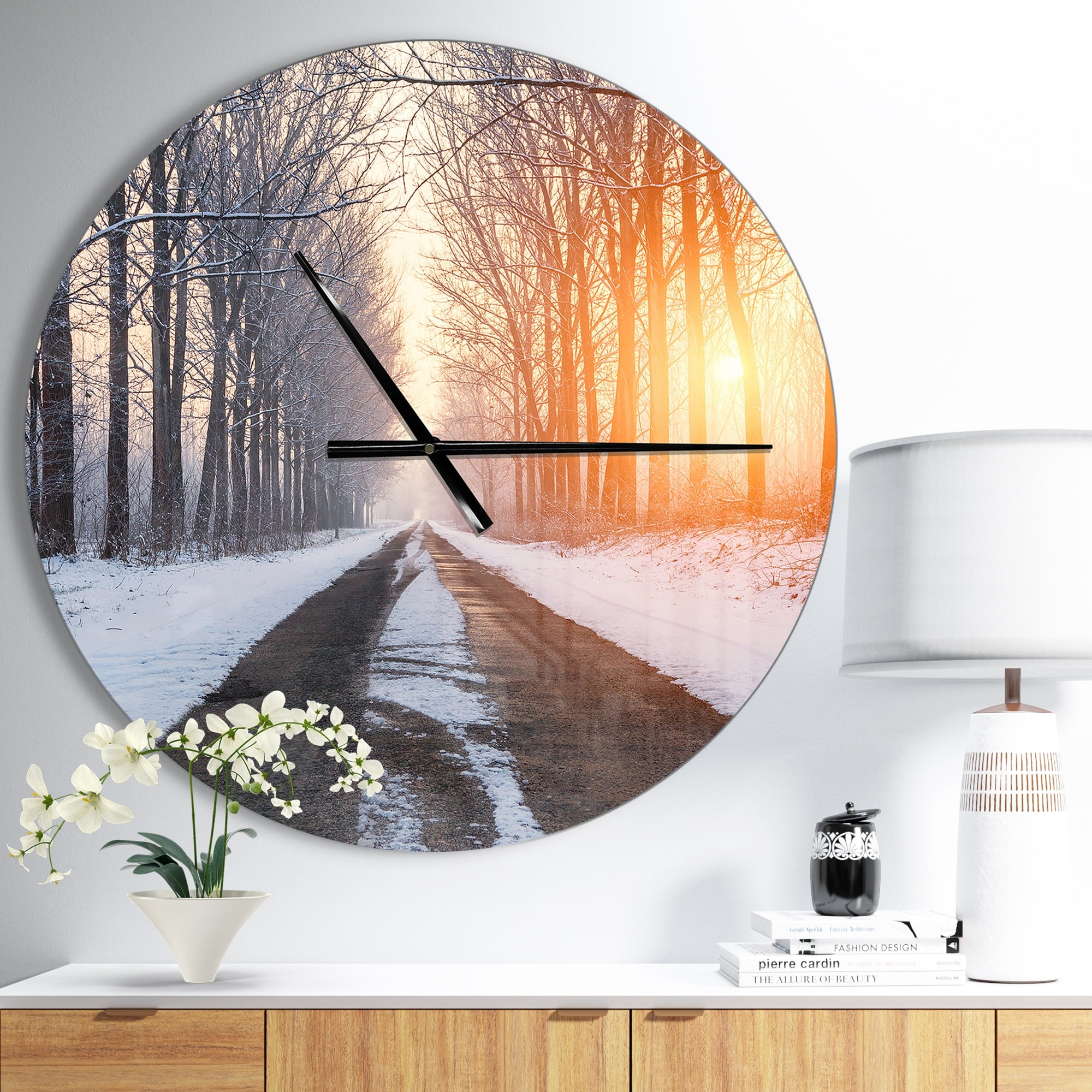 Designart 'Bright Sun Break in Winter Forest' Oversized Forest Wall CLock