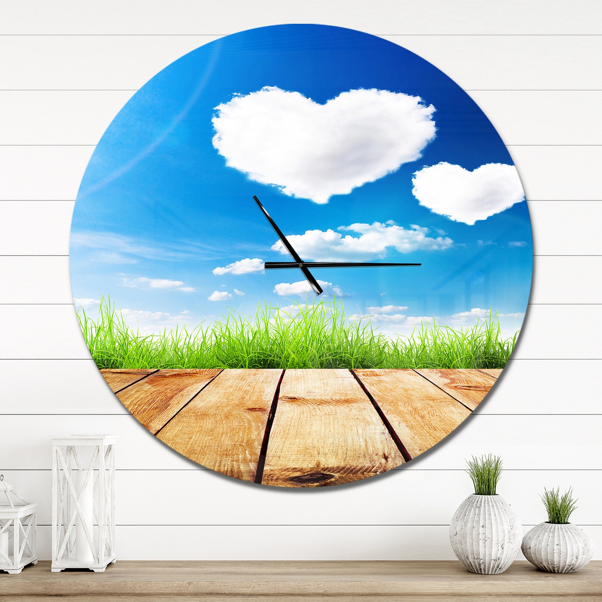 Designart 'Cloud Hearts on Blue Sky' Oversized Farmhouse Wall CLock