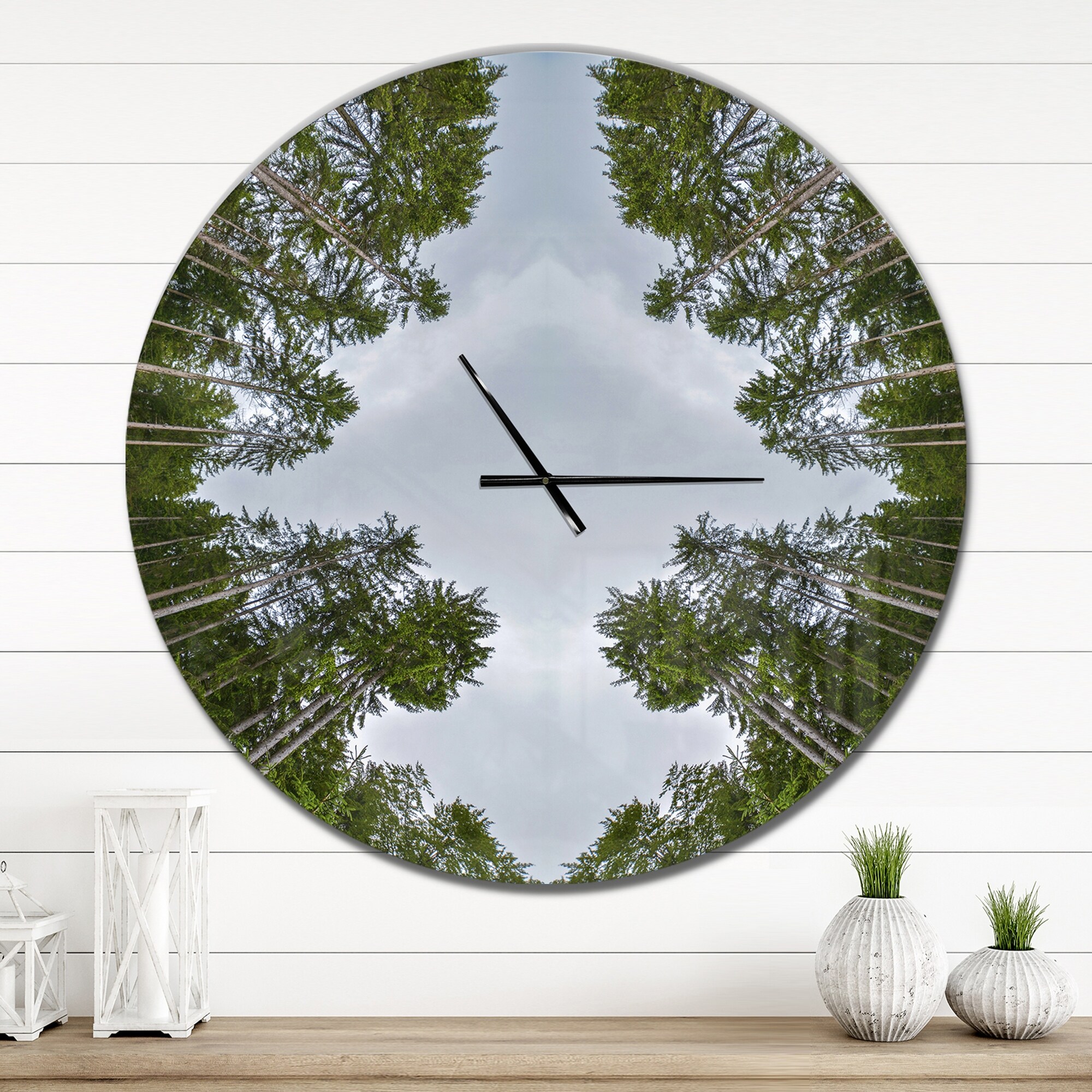 Designart 'Circle Composition of Coniferous Trees' Oversized Modern Wall CLock