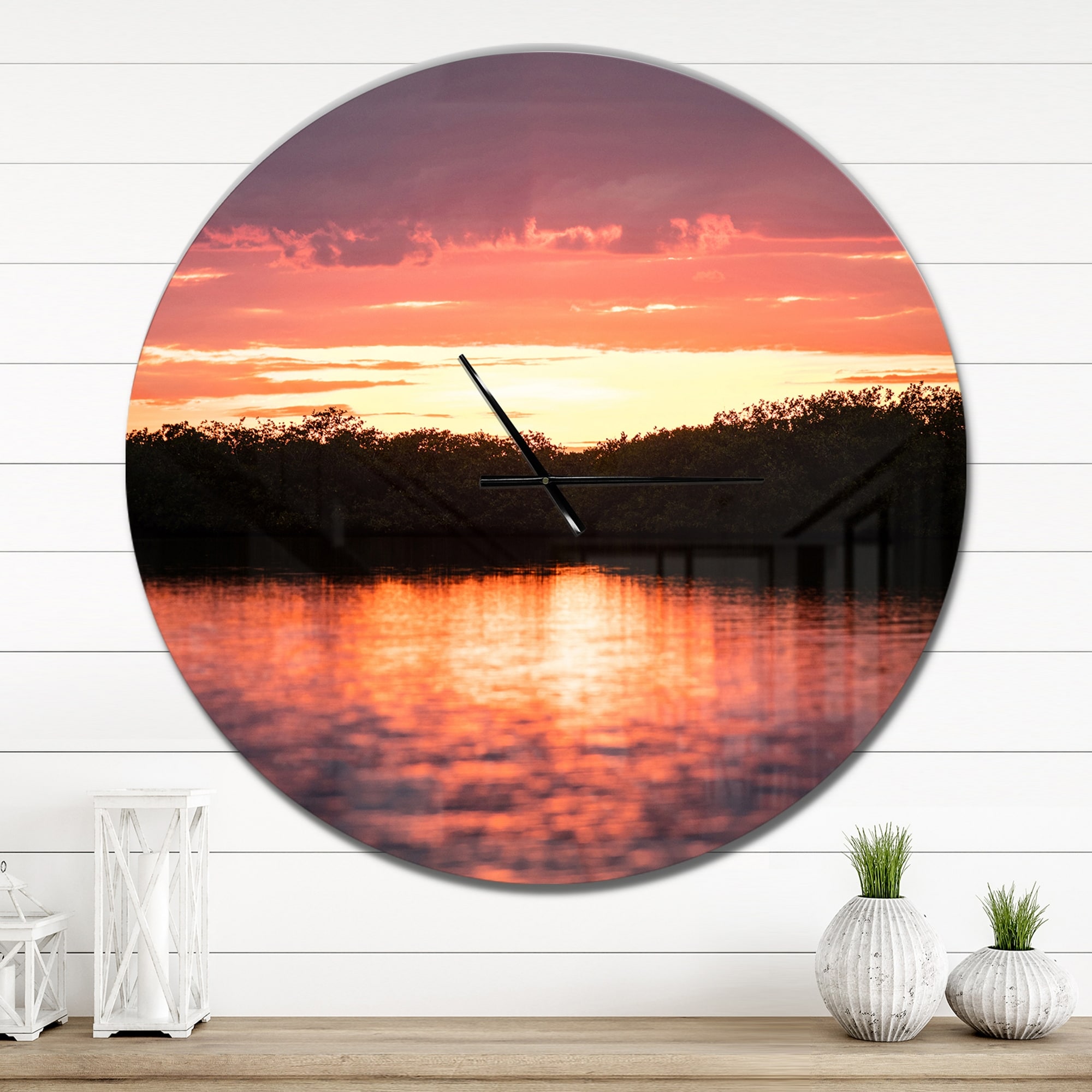 Designart 'Sunset on Tropical Lagoon' Oversized Coastal Wall CLock