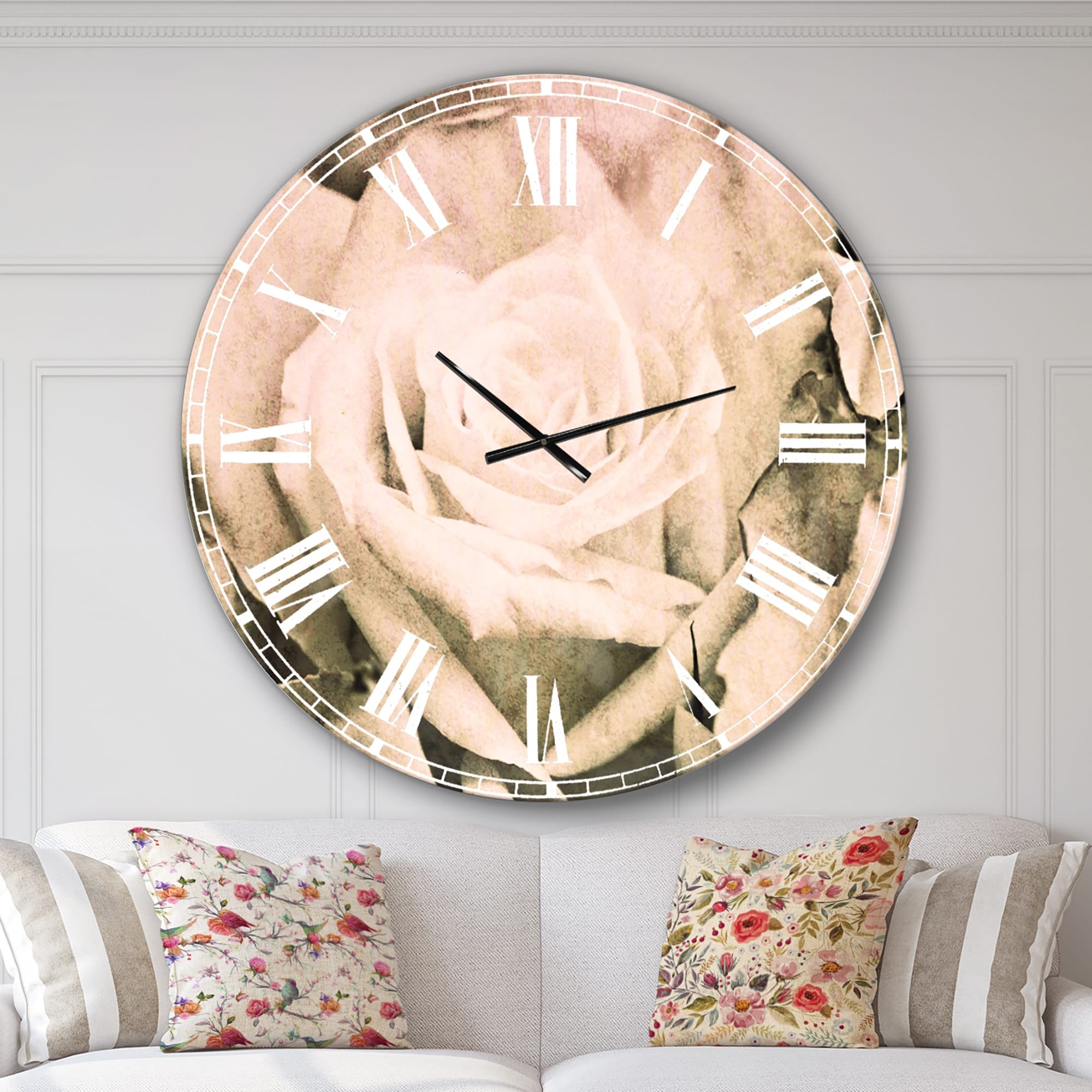 Designart 'Shabby Chic vintage Rose' Oversized Farmhouse Wall Clock