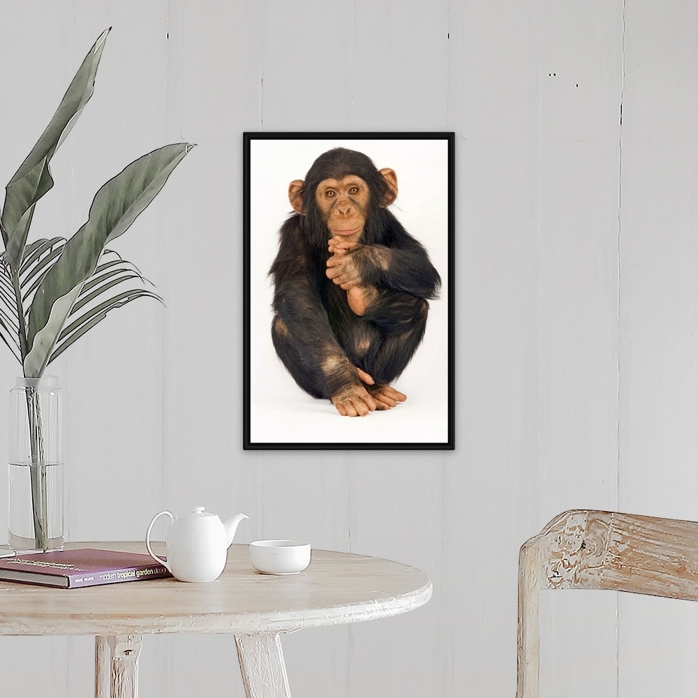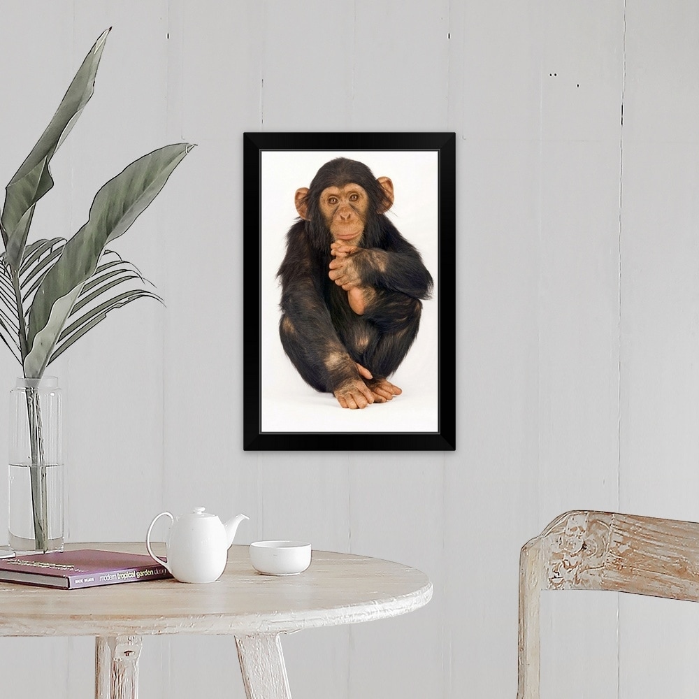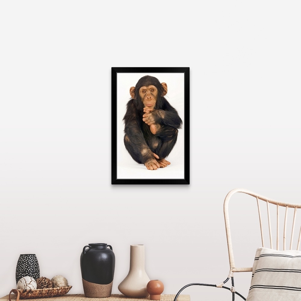 "Chimpanzee (Pan troglodytes). Young playfull chimp." Black Framed Print