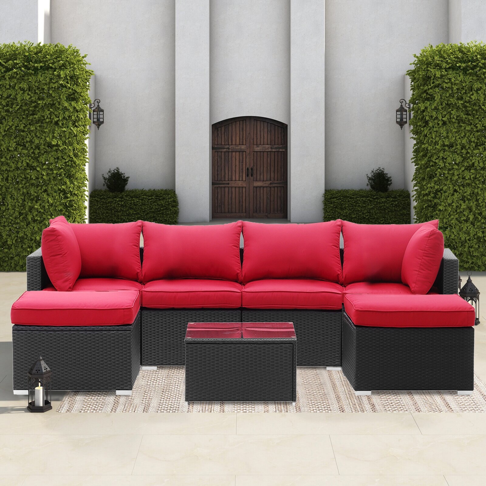 Ainfox 7PCS Outdoor Sofa Sectional Set Wicker Patio Furniture Patio Sofa Height Increased Red