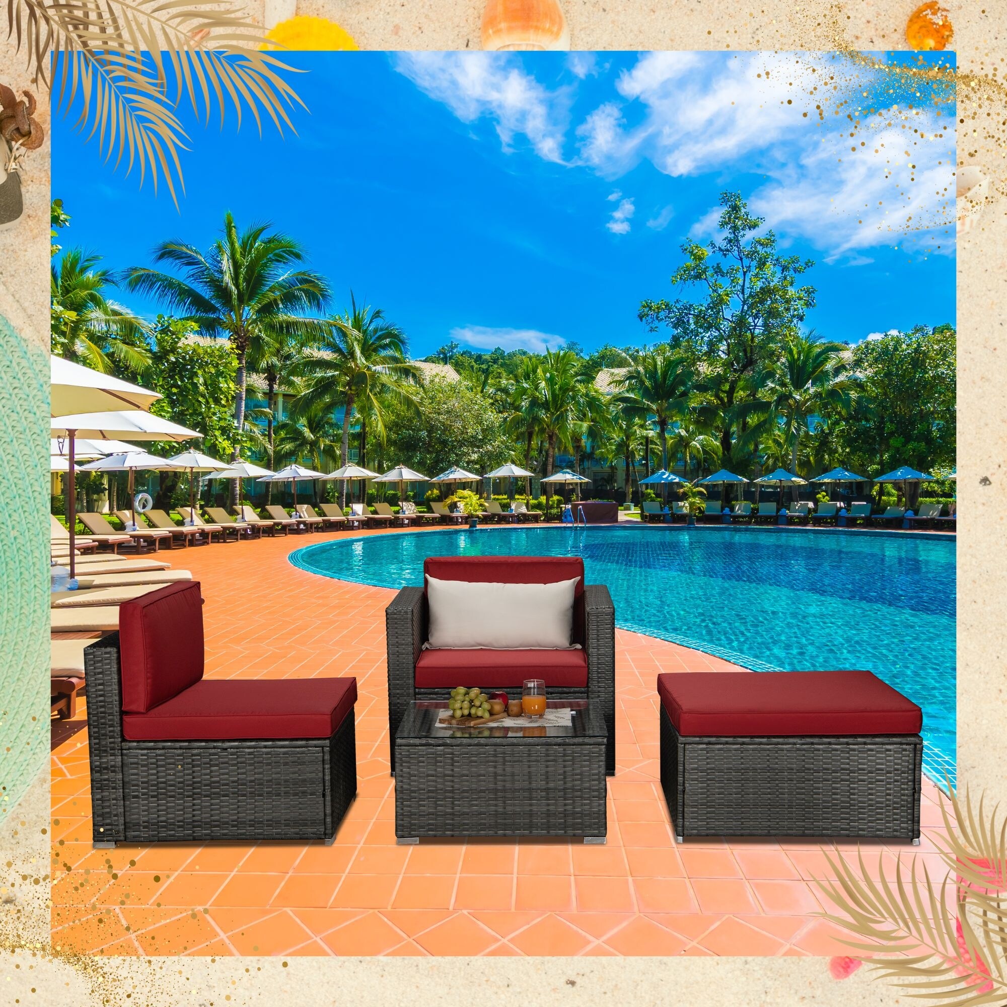 5-Piece Rattan Outdoor Patio Furniture Set